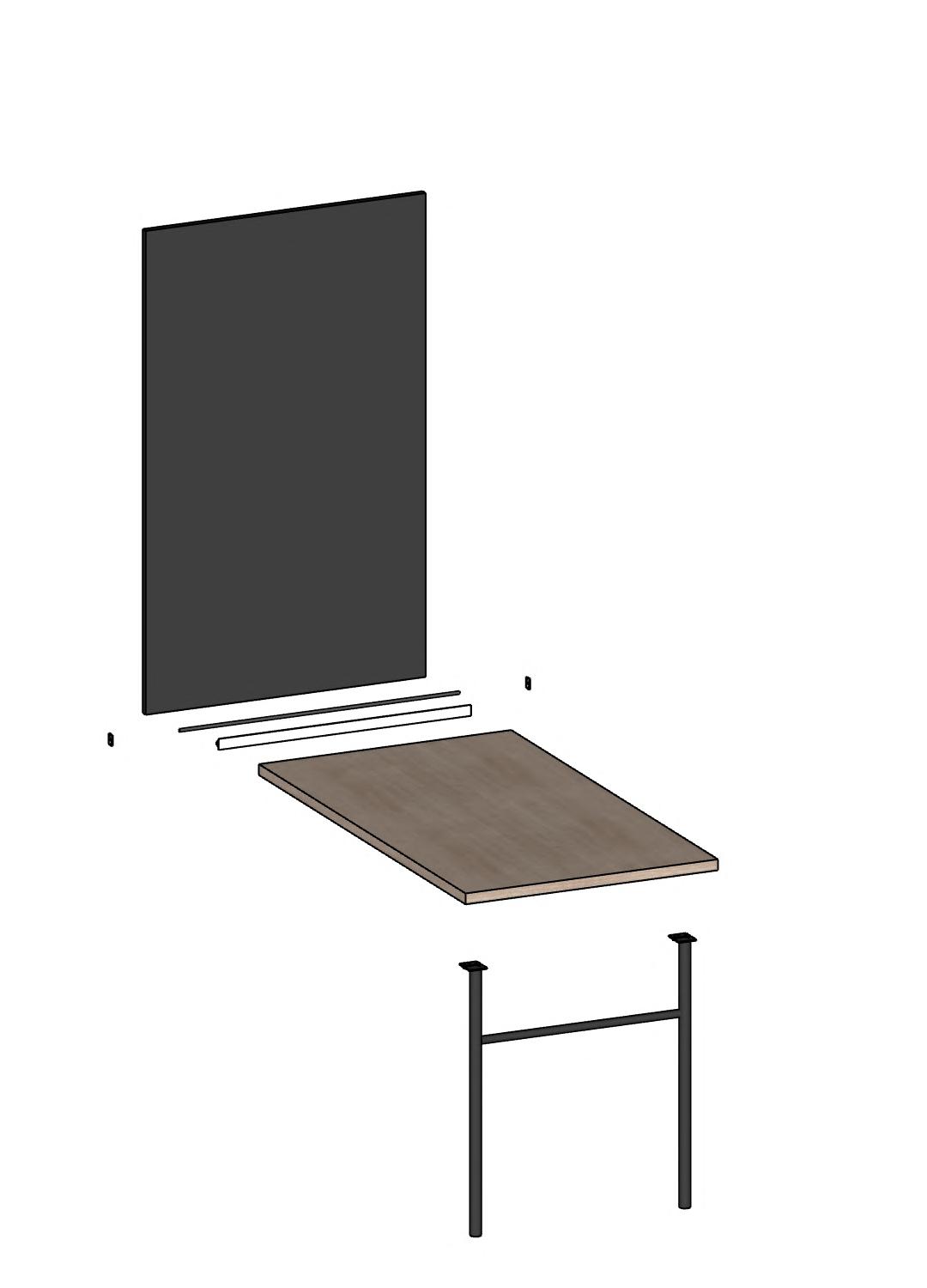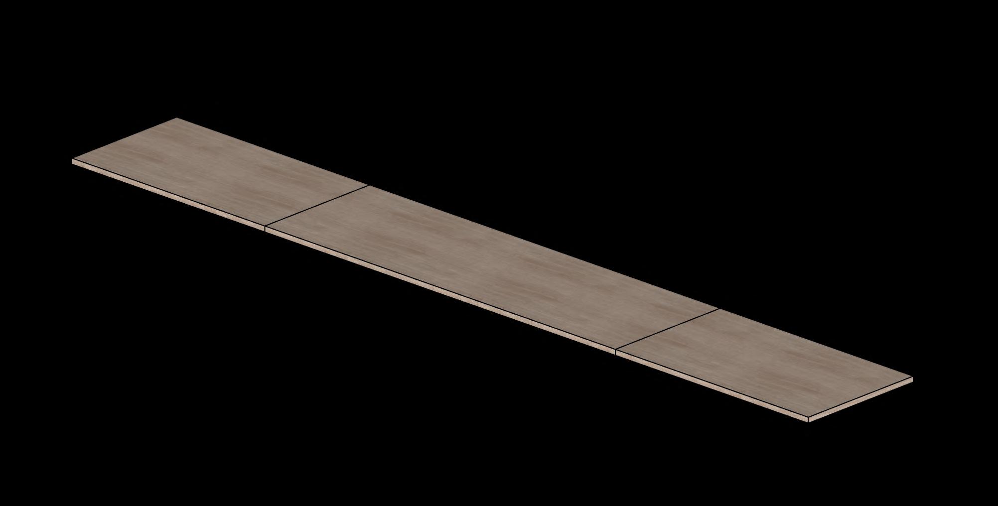 Sobre formado por 3 piezas de tablero aglomerado de 22mm, chapado y canteado en roble natural.