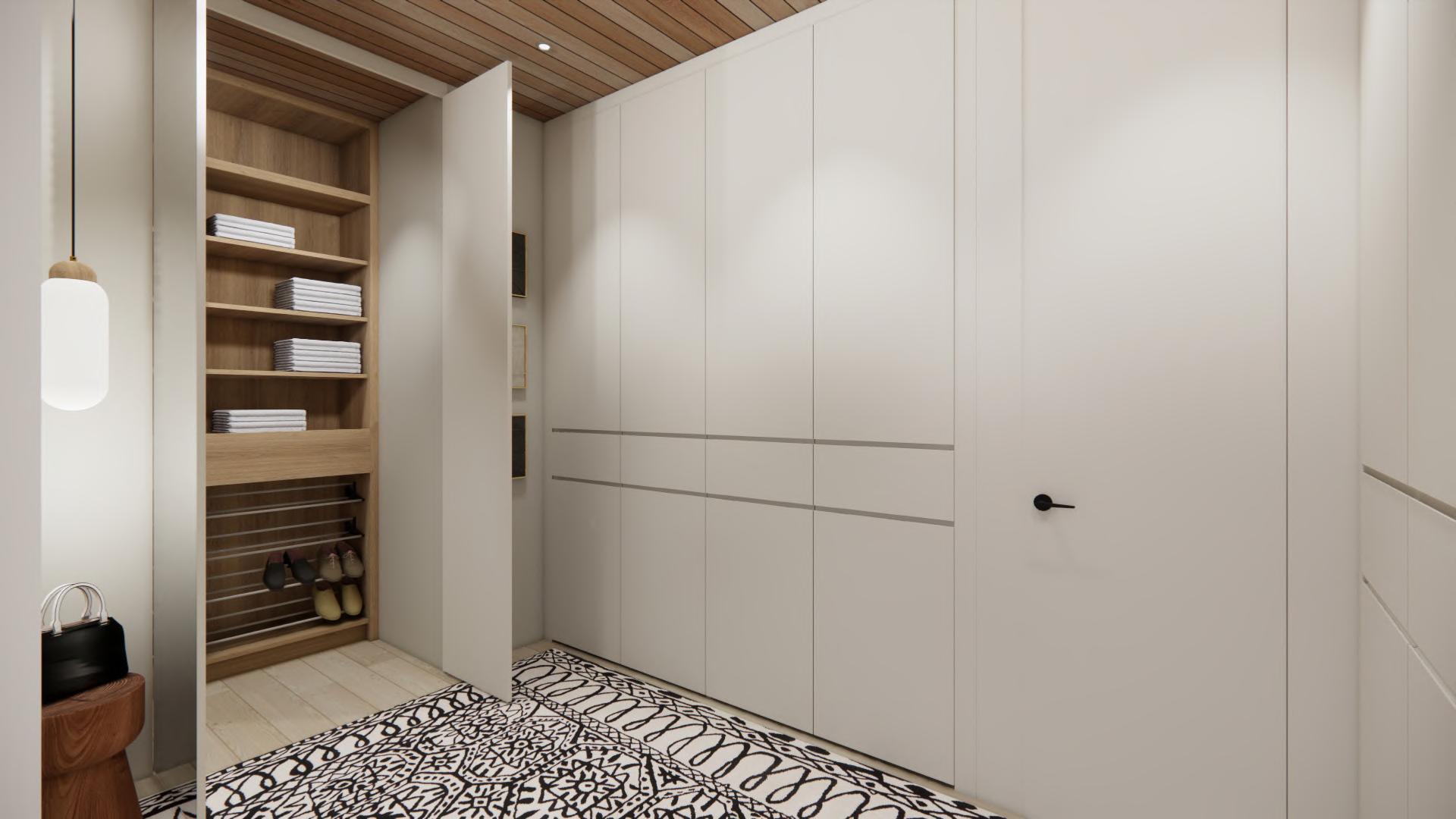 Vestidor con todos los accesorios (2/3 para ella, 1/3 para él).