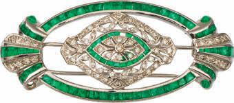 14kt Weißgold, 1 Smaragd im Ovalschliff zu ca. 2,00 ct, Diamanten im Baguette- und Brillantschliff zu insgesamt ca. 2,20 ct