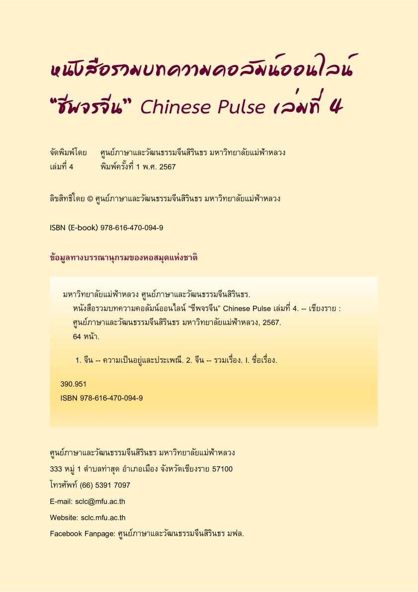 Chinese Pulse #4 หนังสือรวบรวมบทความคอลัมน์ออนไลน์ ชีพจรจีน เล่มที่ 4
