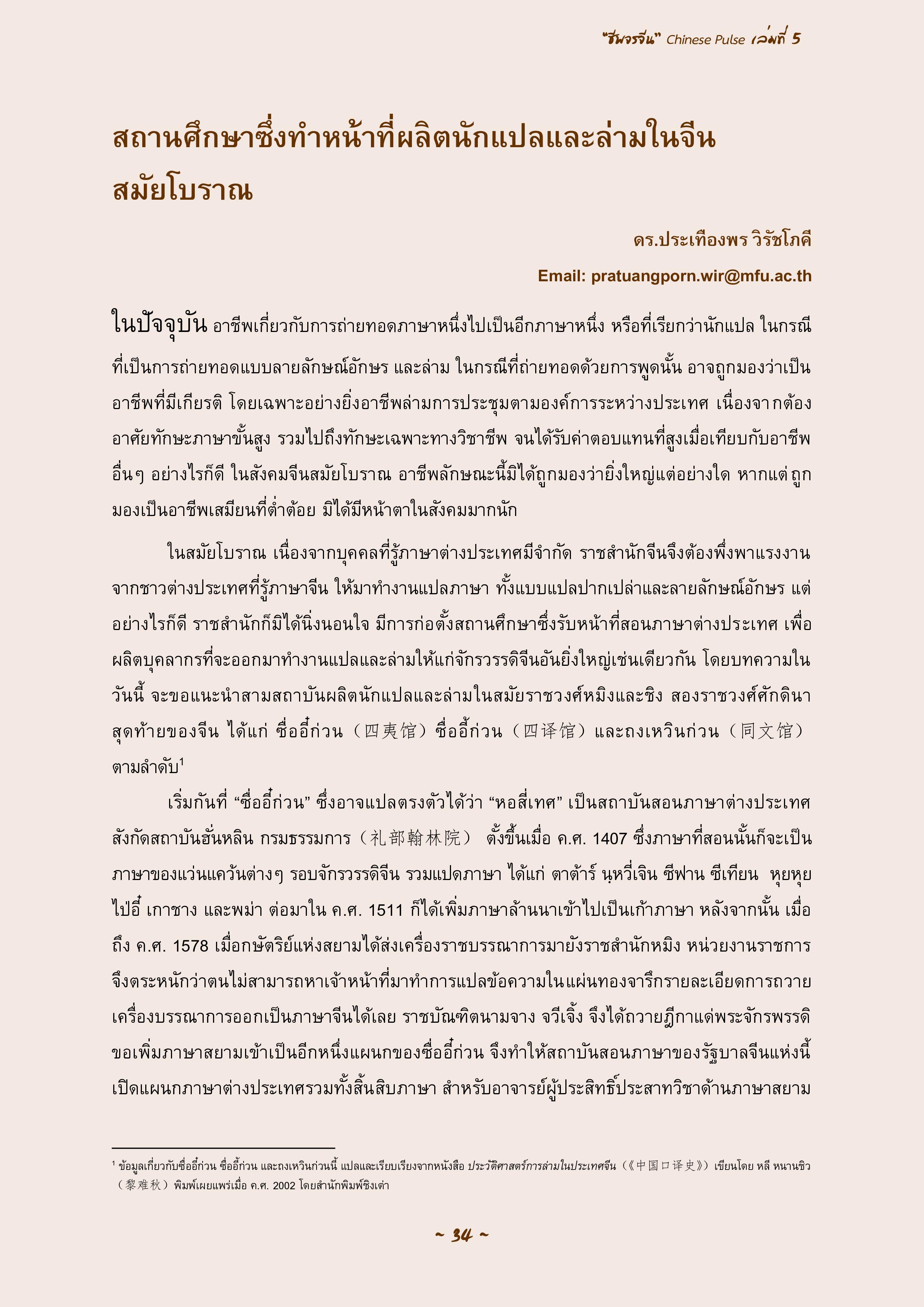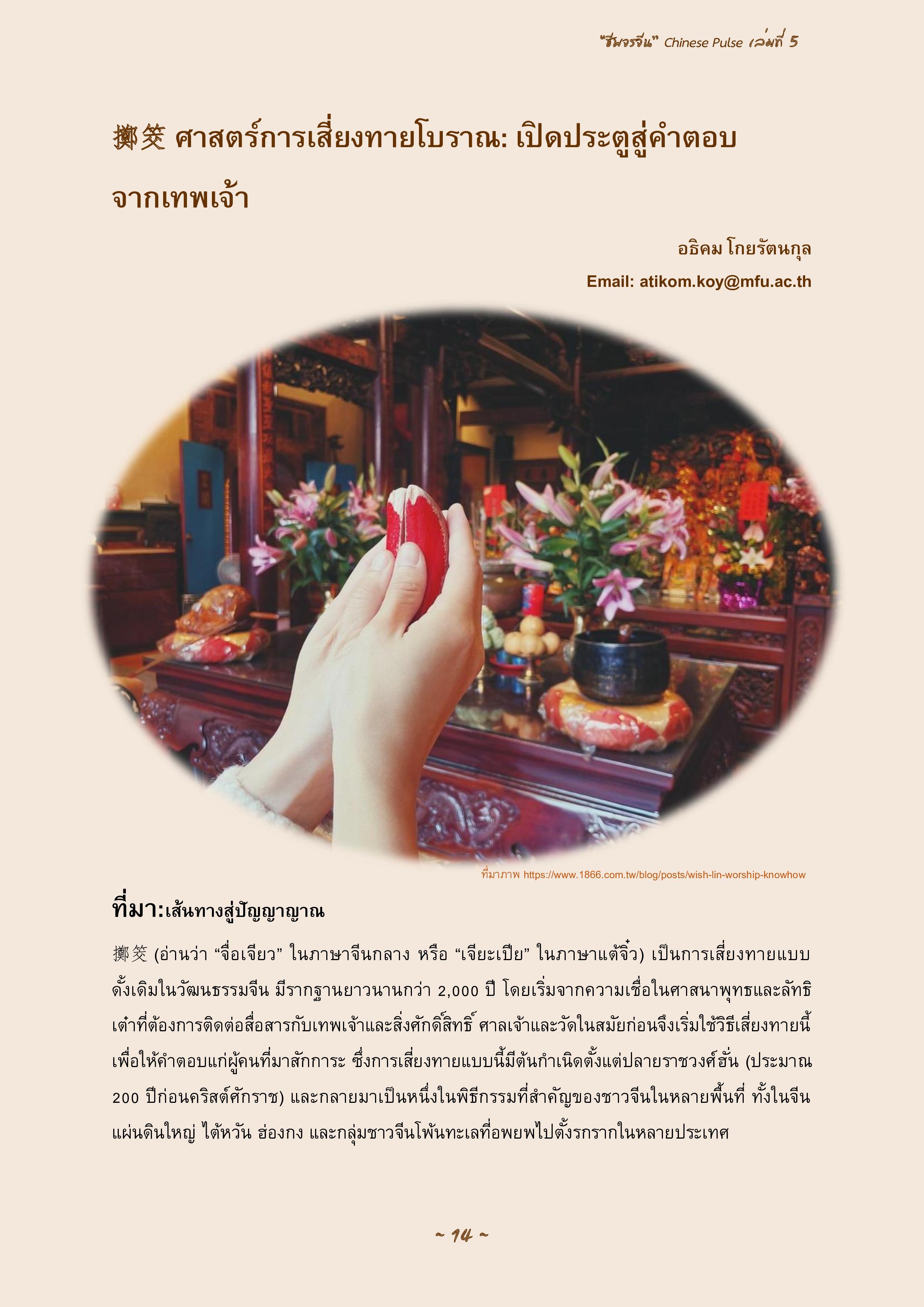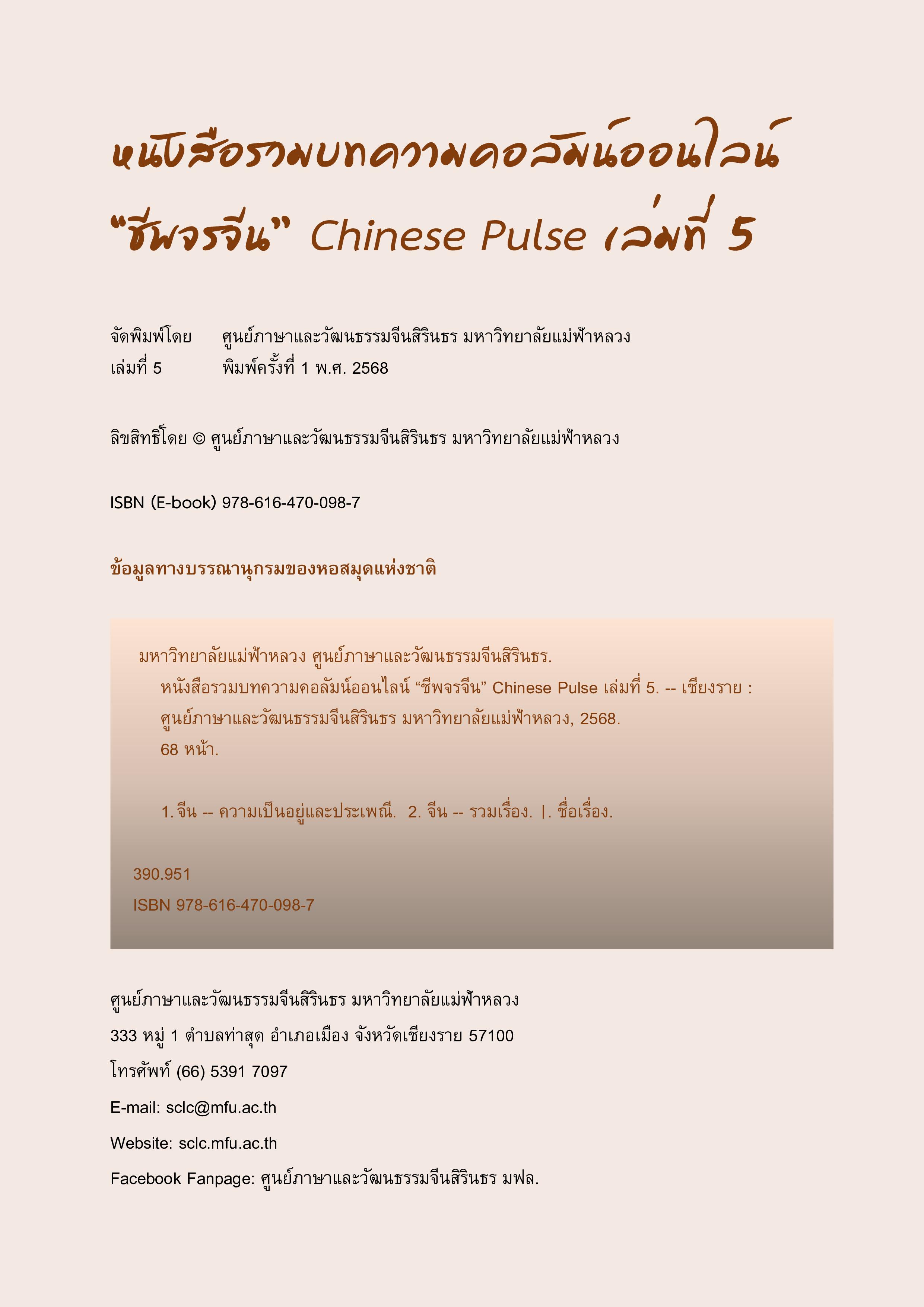 Chinese Pulse #5 หนังสือรวบรวมบทความคอลัมน์ออนไลน์ ชีพจรจีน เล่มที่ 5 by Mae Fah Luang University - Issuu