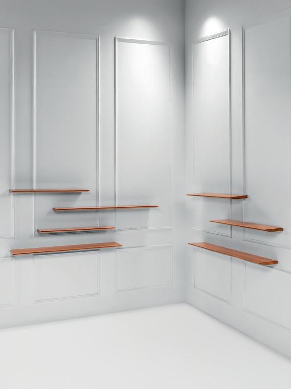 Legno massello sagomato e curvato naturale e tinto, tessuto.