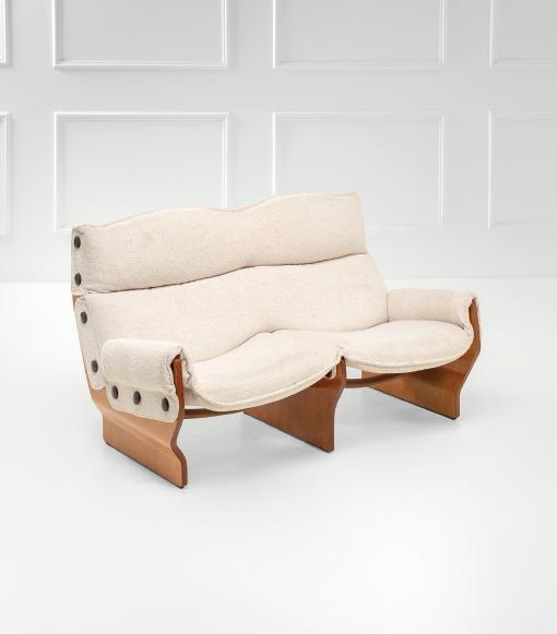 Legno ebanizzato sagomato, tessuto. 1940 ca. cm 47x210x47