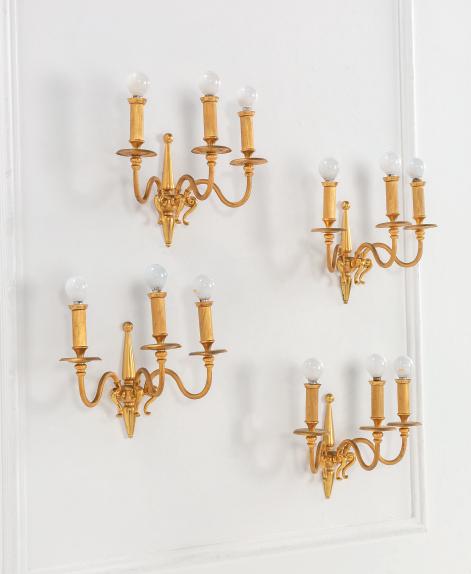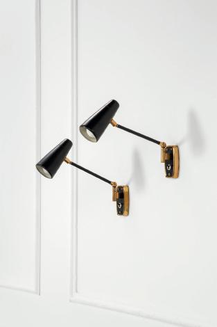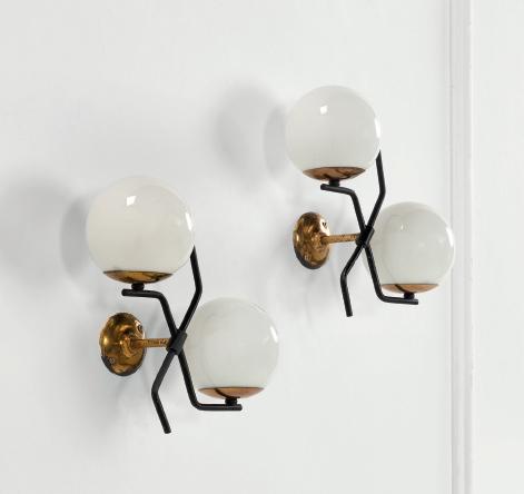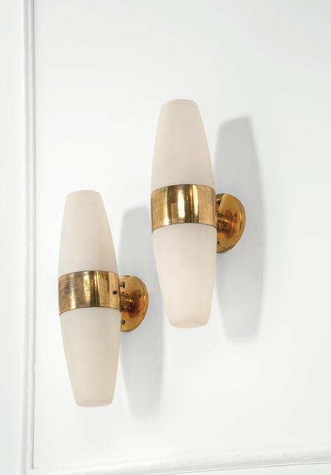 Due lampade da parete Vetro trasparente cordonato, ottone.