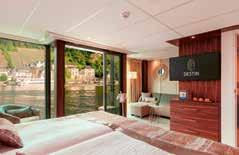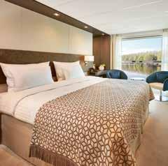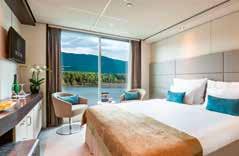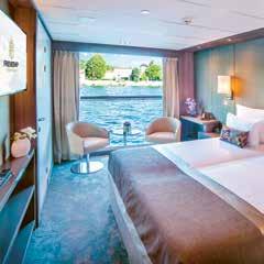 De cabines aan boord van onze 5-sterren luxe hotelschepen zijn van alle gemakken voorzien en laten zich het beste vergelijken met een luxe kamer in een hotel. Onze kamers met panorama schuifpui en Frans balkon variëren in grootte van 15 t/m 17 m2. Wenst u nog meer ruimte?