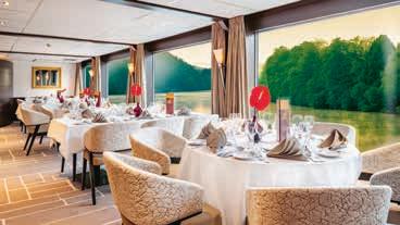 Op het zonnedek is het heerlijk vertoeven op één van de aanwezige ligbedden, terwijl de prachtige en indrukwekkende landschappen aan u voorbijtrekken. Op het Rubindek bevindt zich ook het restaurant met zijn elegante uitstraling.