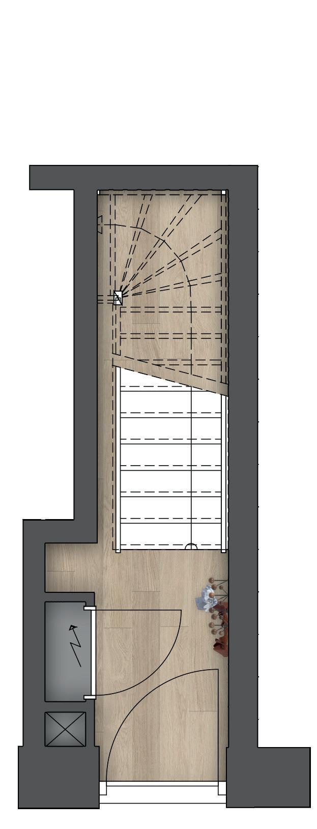 Via de entree op de begane grond ga je met de trap naar je bovenwoning. Op de eerste verdieping is een ruime woonkamer met open keuken, grenzend aan een zonnig balkon. Ook is hier een inpandige berging. Op de tweede verdieping is een ruime slaapkamer en een volledig uitgeruste badkamer met douche, wastafel en toilet. Deze woningen hebben standaard een dakkapel. De gespiegelde hoekwoning met bouwnummer 23 heeft als extra een zijraam in de woonkamer en de grote slaapkamer met dakkapel.