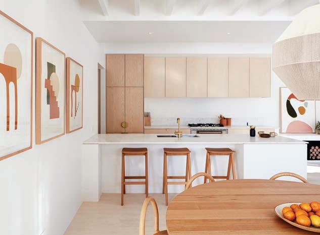 Nook sofa and Harvest armchairs from Jardan. Rugs from Halcyon Lake. Sidetables from Mark Tuckey. Mono coffee table from Meizai. Leather sofa from Dare Gallery; Wilfred armchair and Alby ottoman from Jardan; and rug from Armadillo & Co in kid’s lounge. Custom made dining table from Green Cathedral. Kitchen stools from Green Cathedral. Master bed from Heatherly Design. Sidetables from Ethnicraft. Linen from Cultiver, Kip&Co and Adairs. Leather bed from Heatherly Design and rug from Armadillo & Co in guest bedroom.
