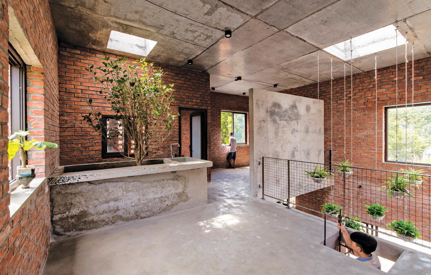 Concrete floors and ceiling. Bricks and glass supplied by Viglacera.