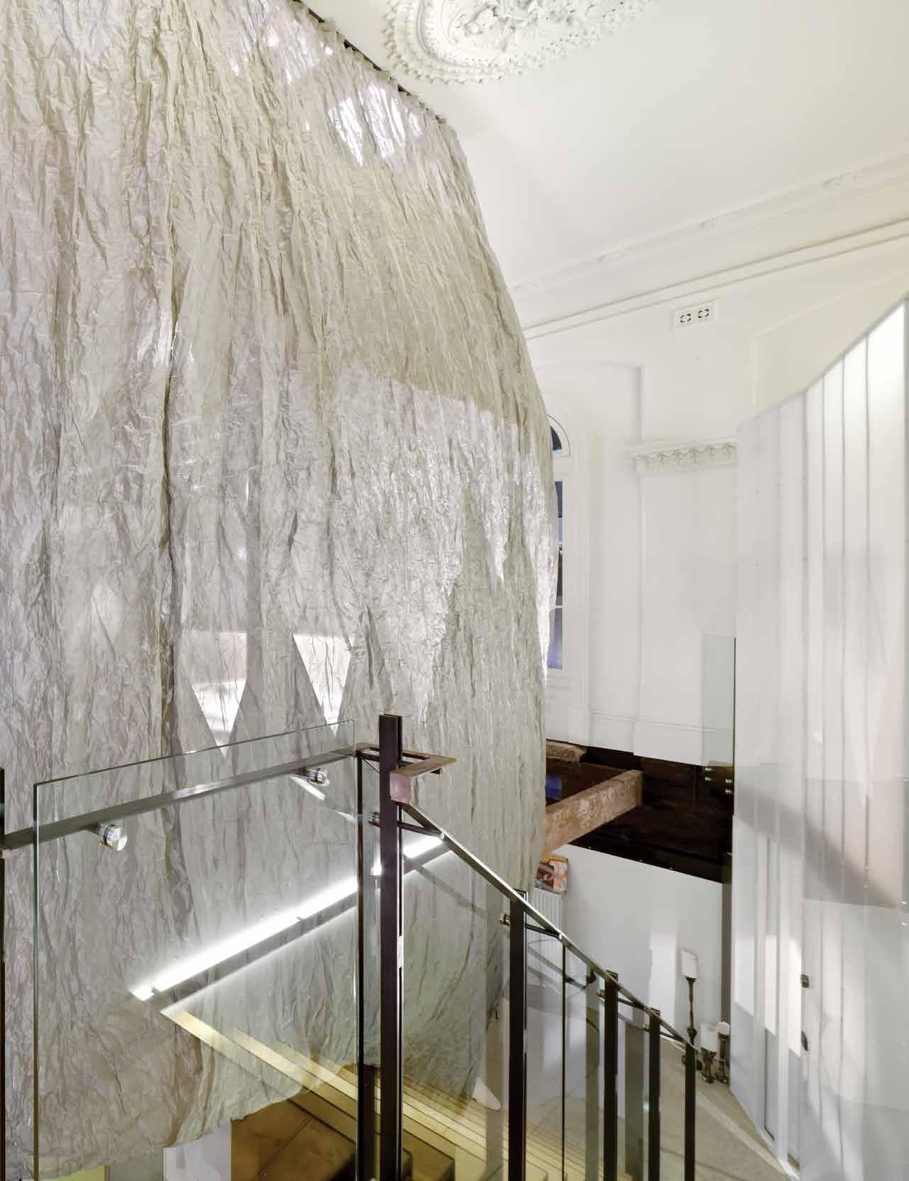 Gregg pendant lights from Foscarini. Rituals bedside lamps from Foscarini. MaxiSpy spotlights by Delta Light.