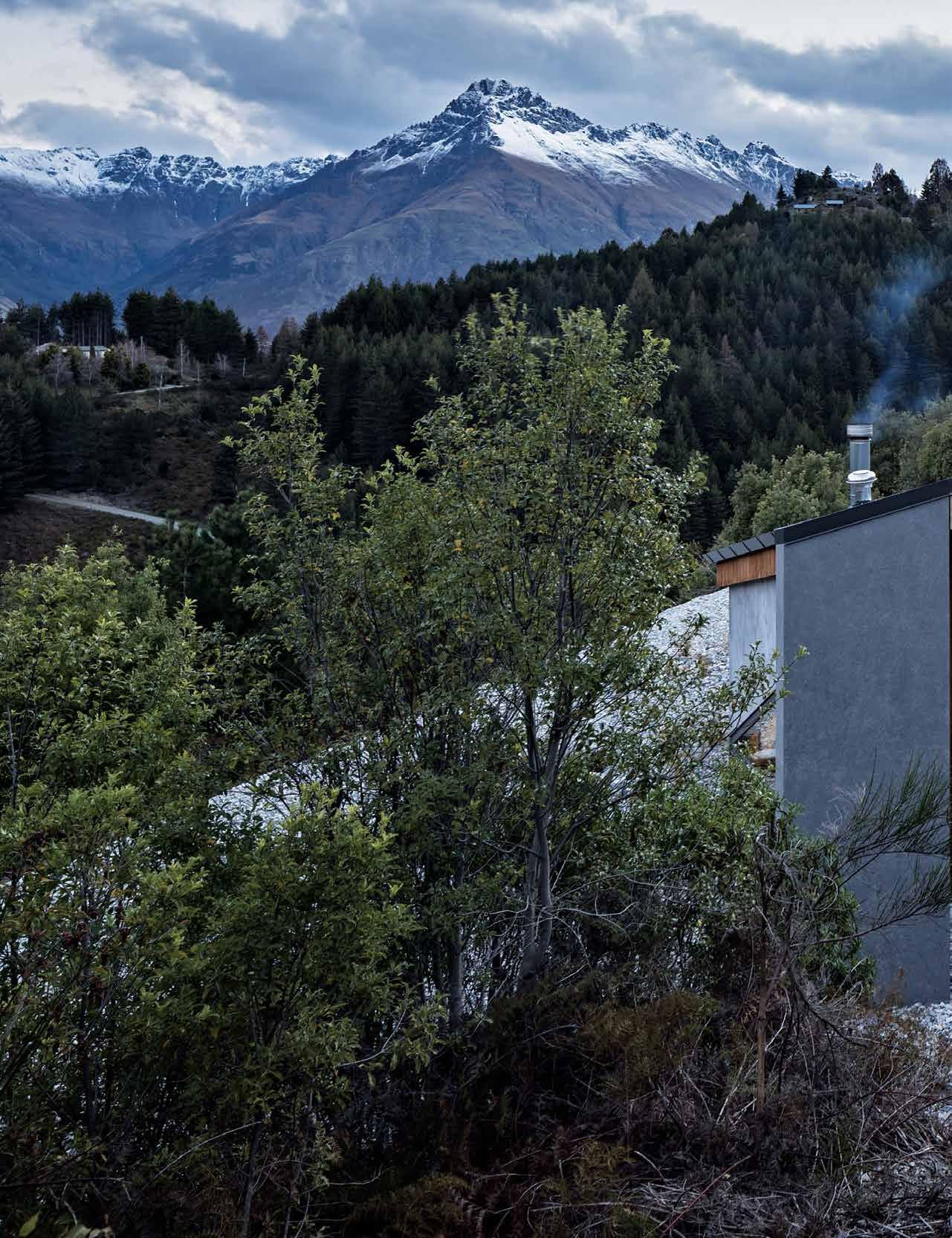 “WWhile Sam’s hut is on the forest floor, the site for this house overlooks Lake Wakatipu near Queenstown – on a platform created by a large cut in the side of the valley wall. “It wouldn’t have been my approach to create a house site,” says Vaughn. “So we began to imagine how we could somehow repair or reinstate part of the site by referencing the original contour. This led to how the house might have been formed around large rock fragments left during the platform excavation. A rock bivvy perhaps.”