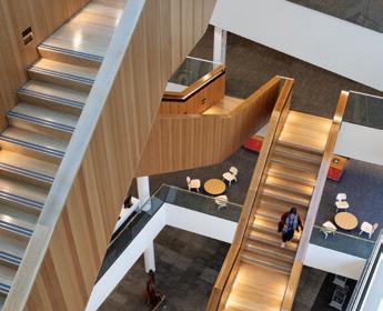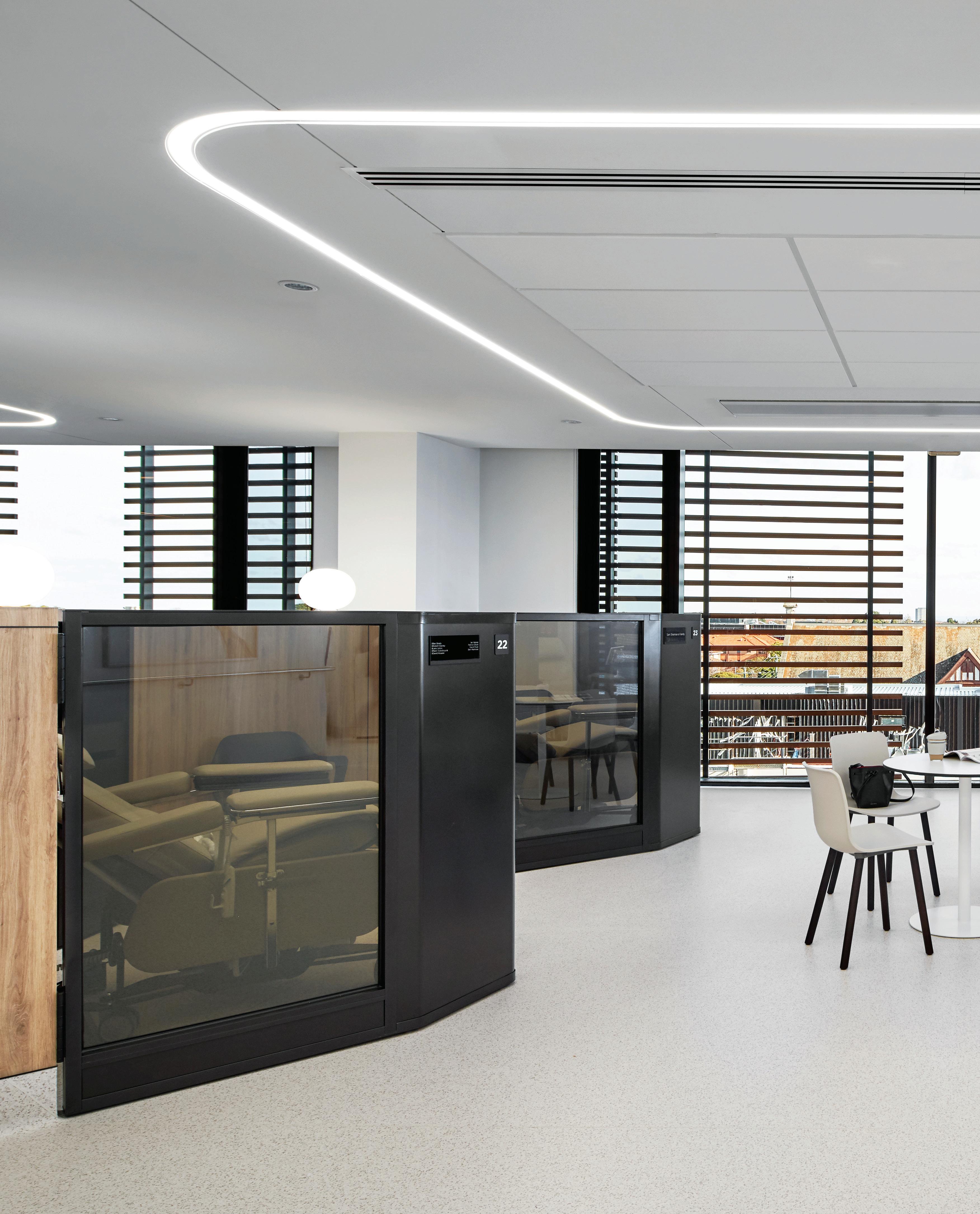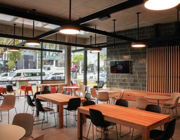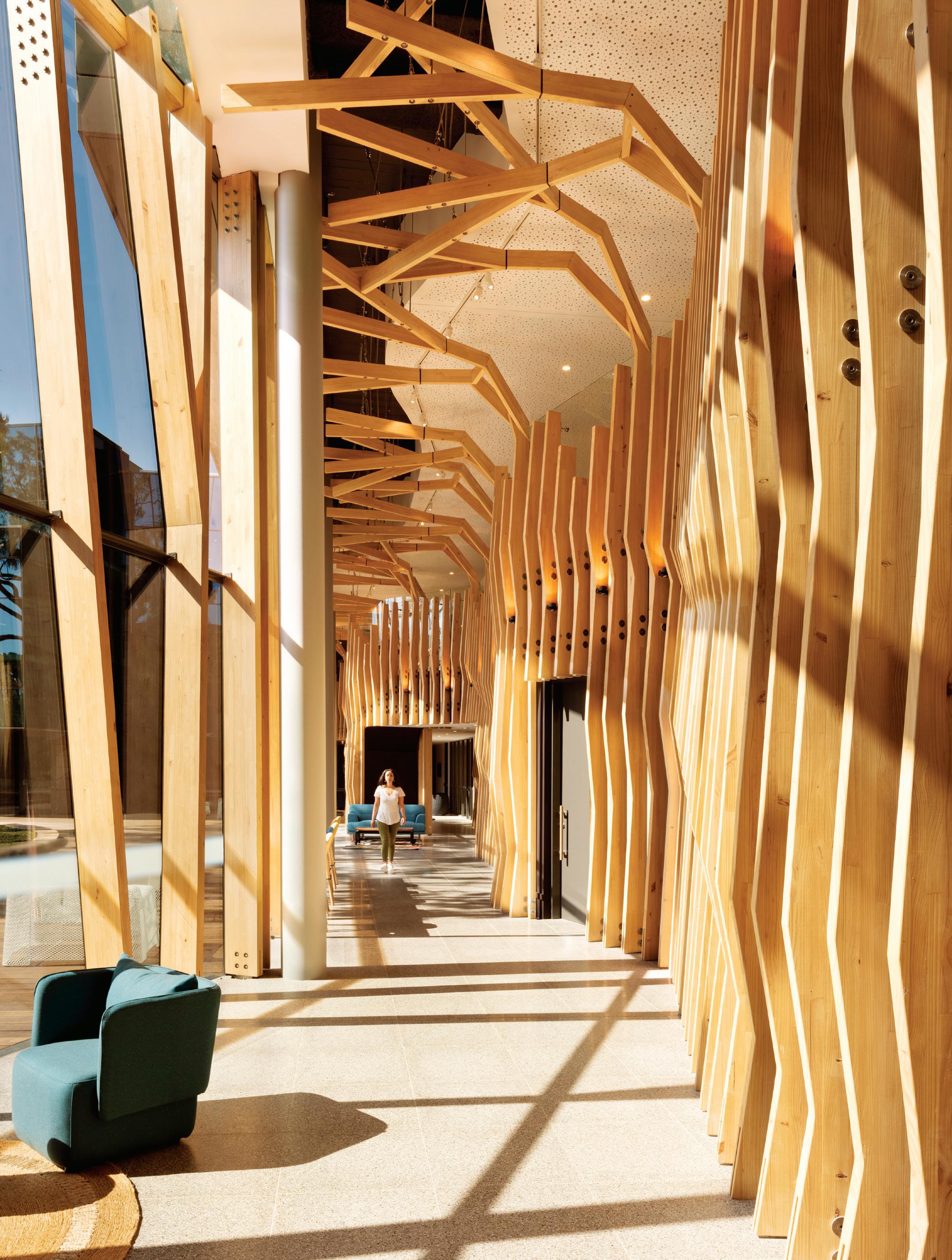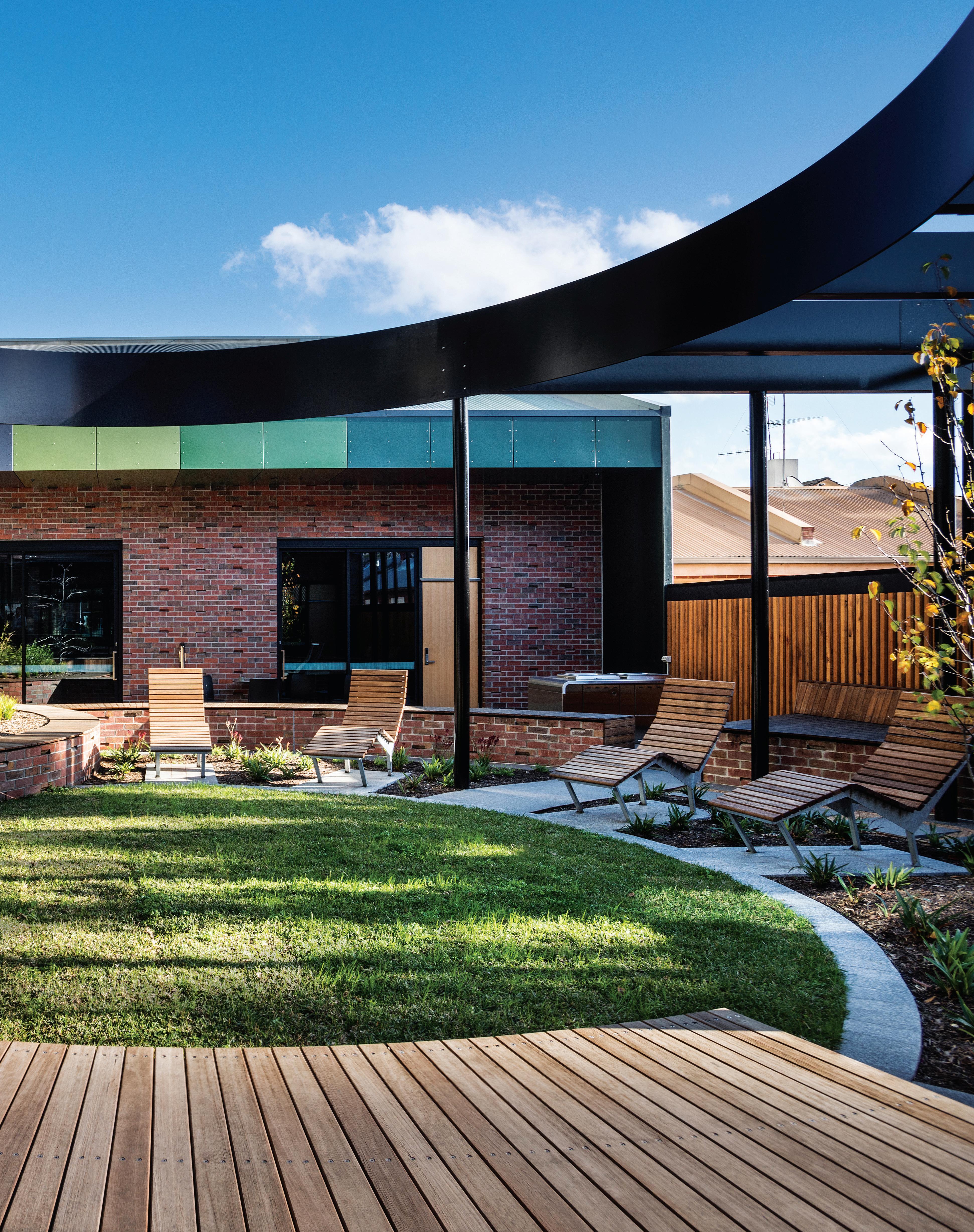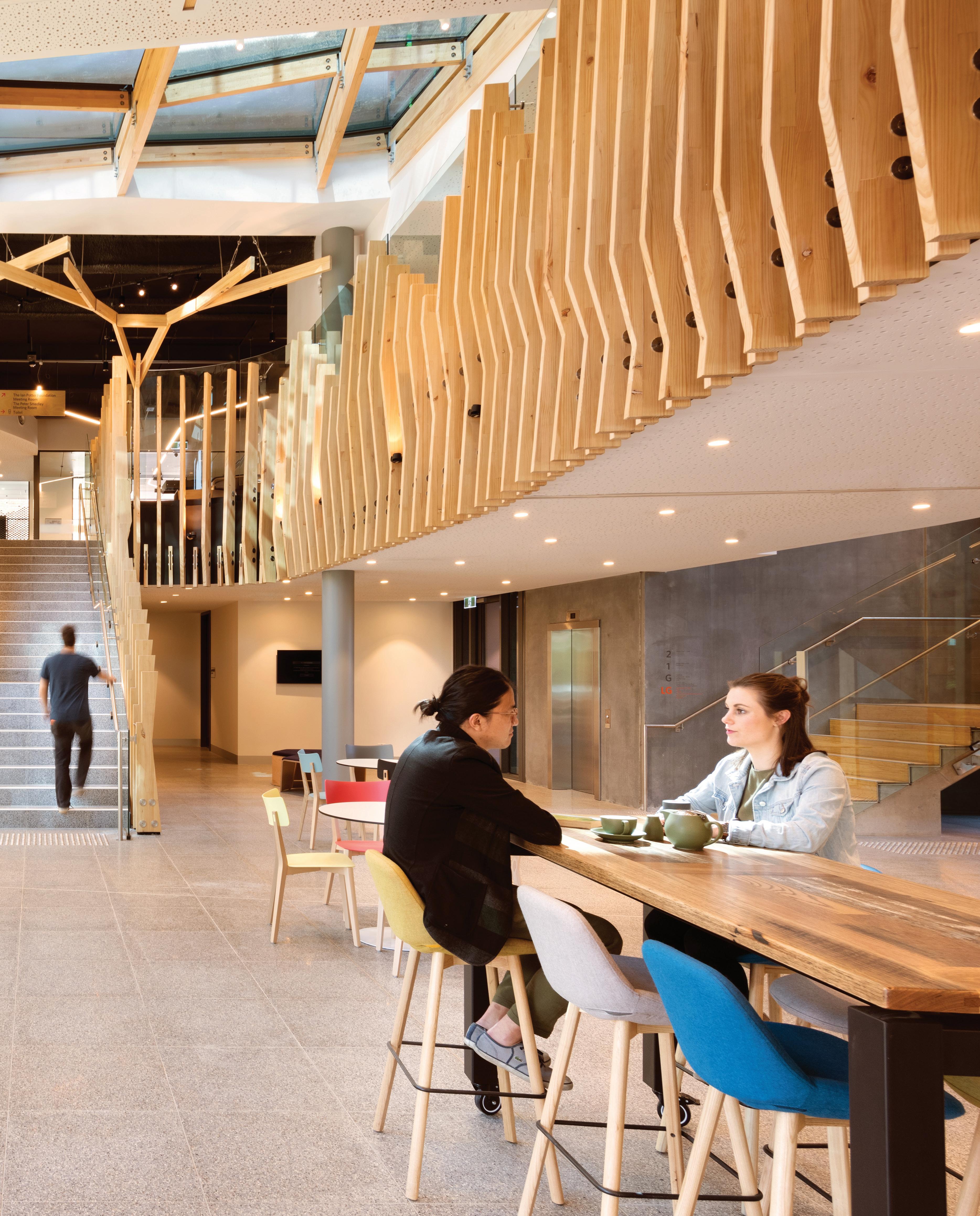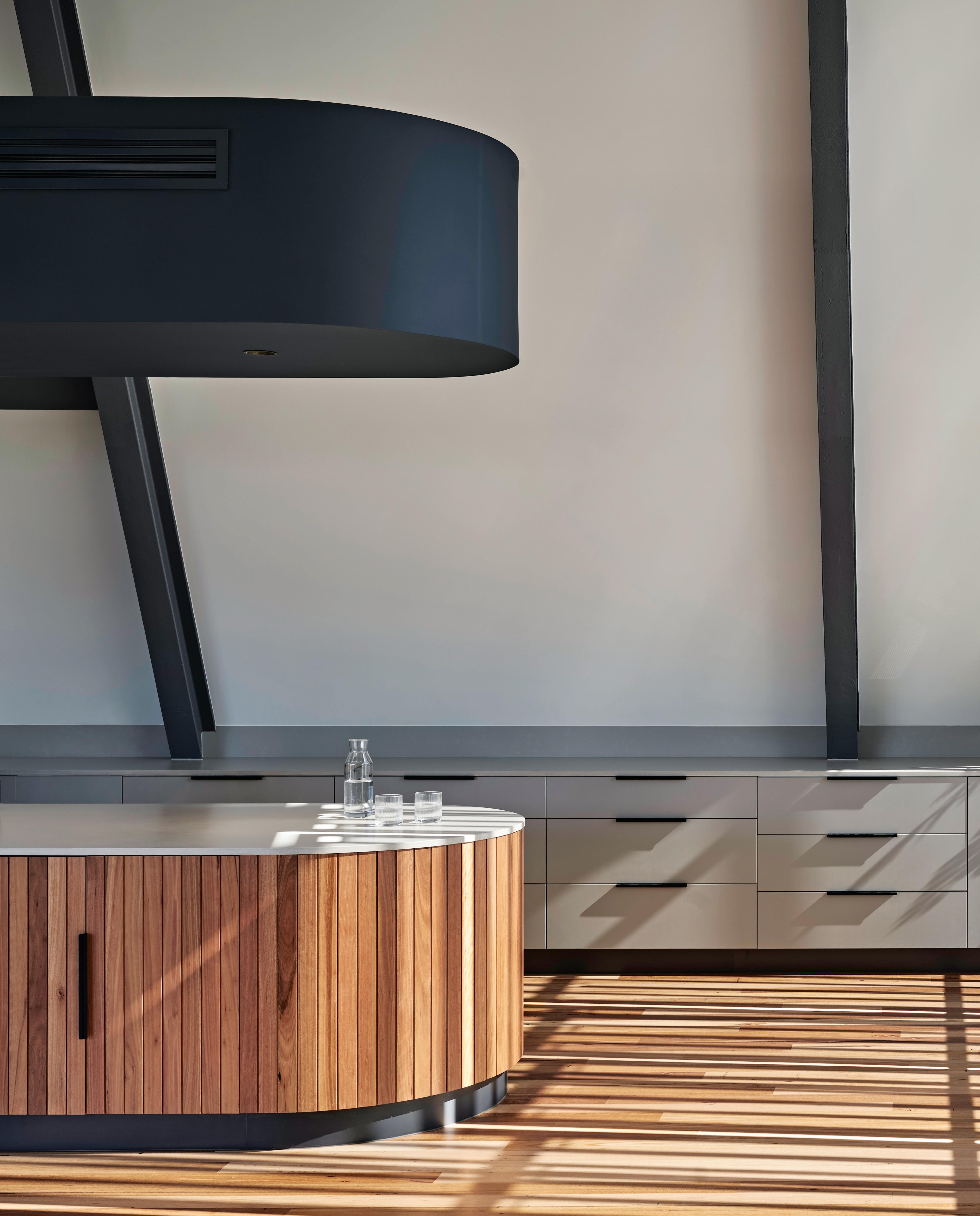 Ornamenta and Gamma Due wall tiles, Urban Edge. ‘BT Bamboo’ flooring, Ecoflooring. Laminates throughout, Laminex. Flooring carpet riles, Interface. Tiles, Signorino Tiles. Acoustic tiles, Atkar. Feature wall and ceiling, Sculptform. Paint throughout, Dulux. Textiles, Instyle.
