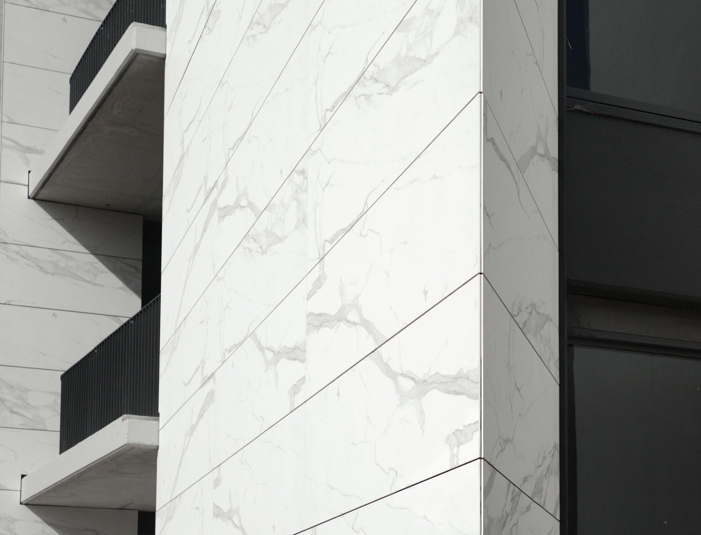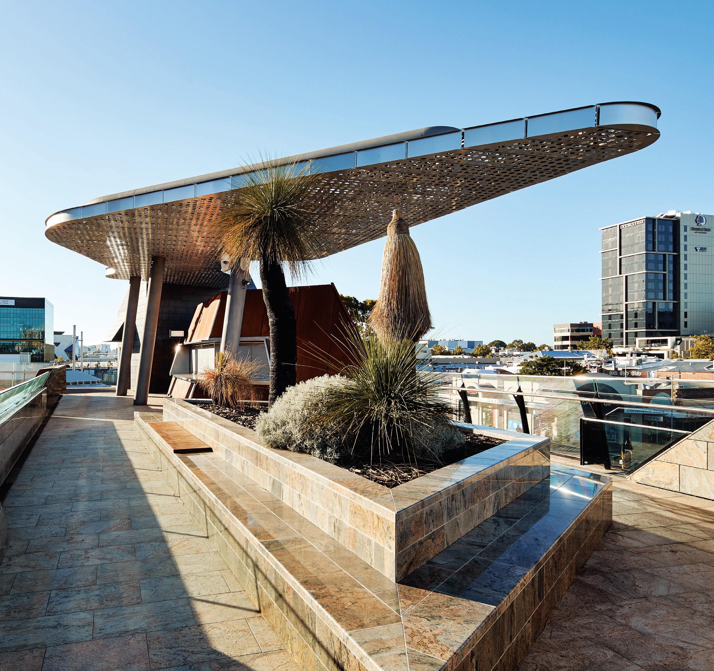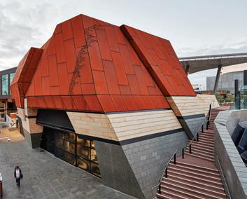 ‘Recore’ steel, Bluescope Steel . Zinc finishes, VM Zinc . Aluminium finishes, AAF. Stone throughout, Urbanstone . Perforated metal, Locker Group