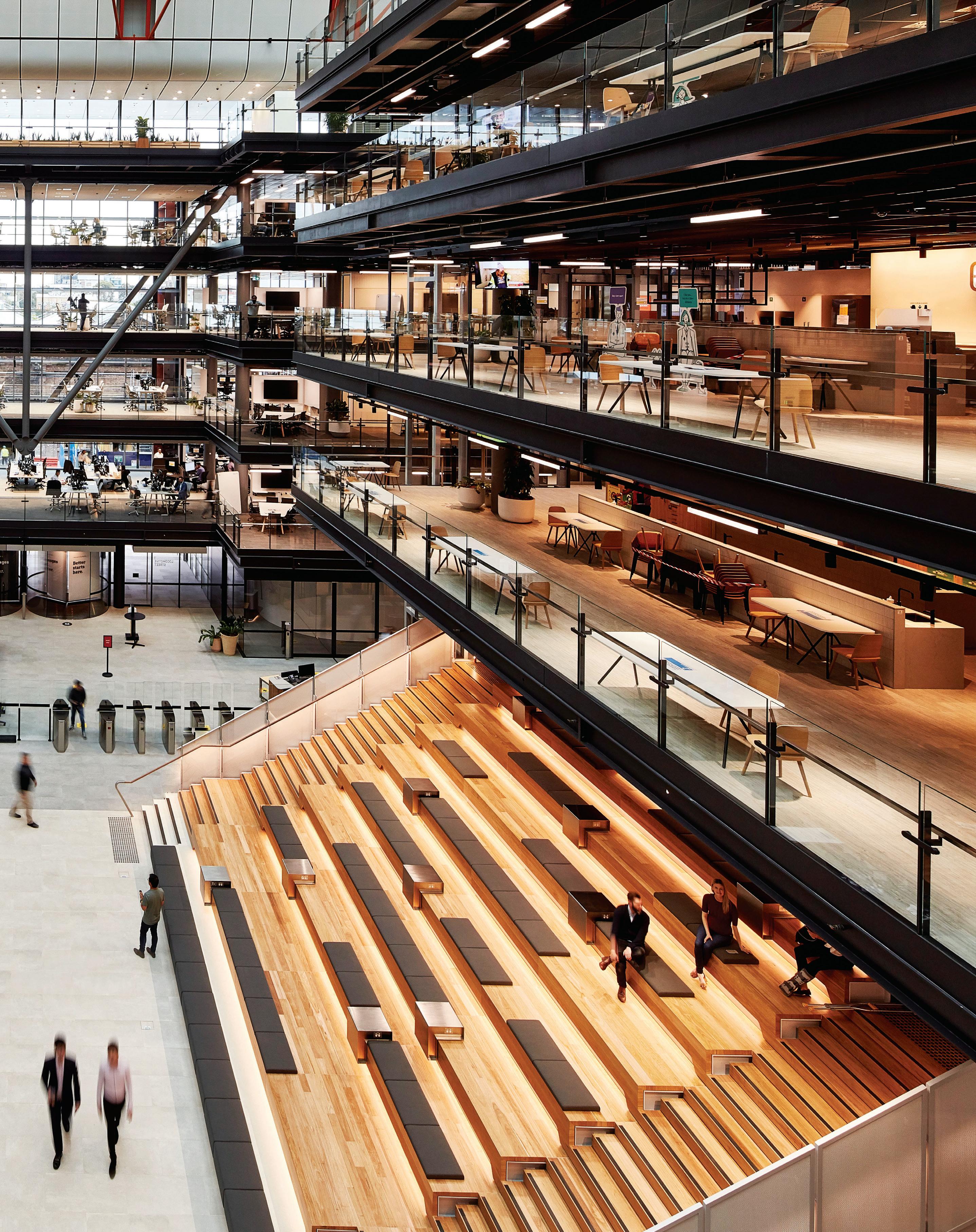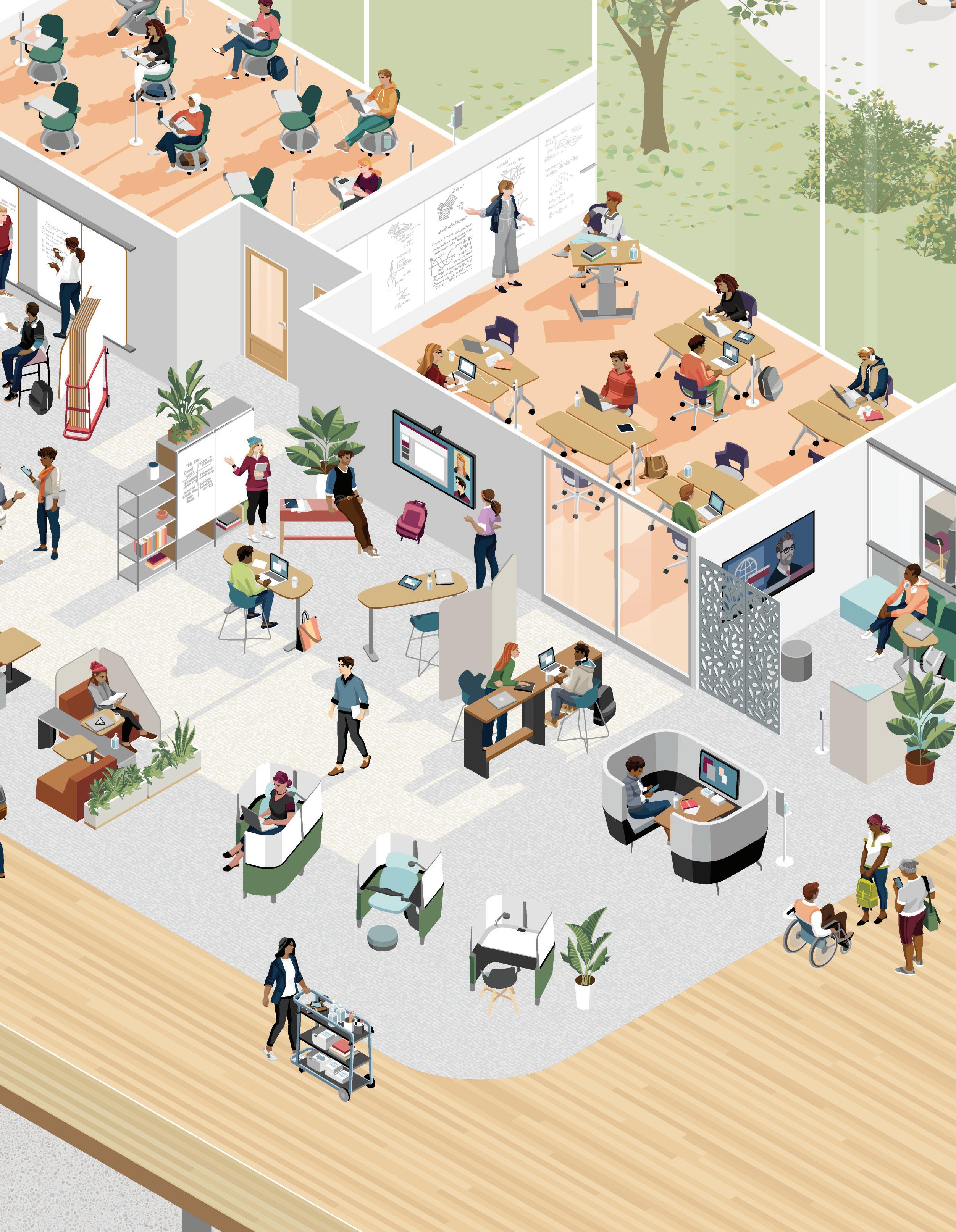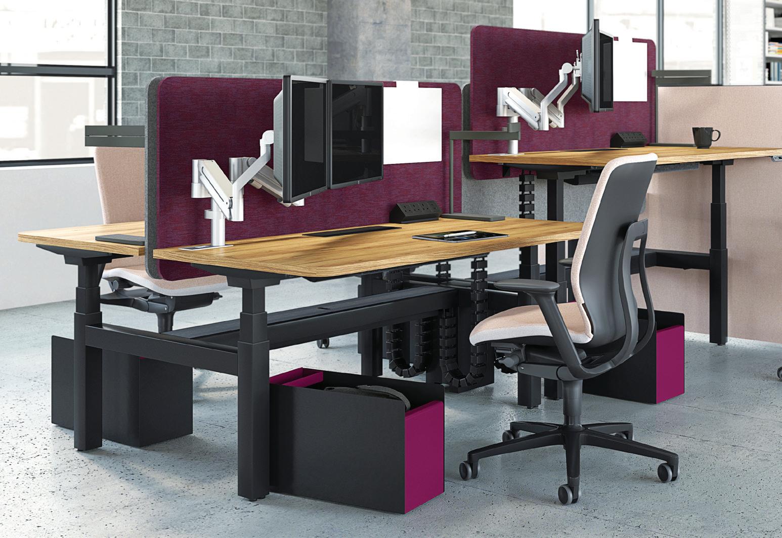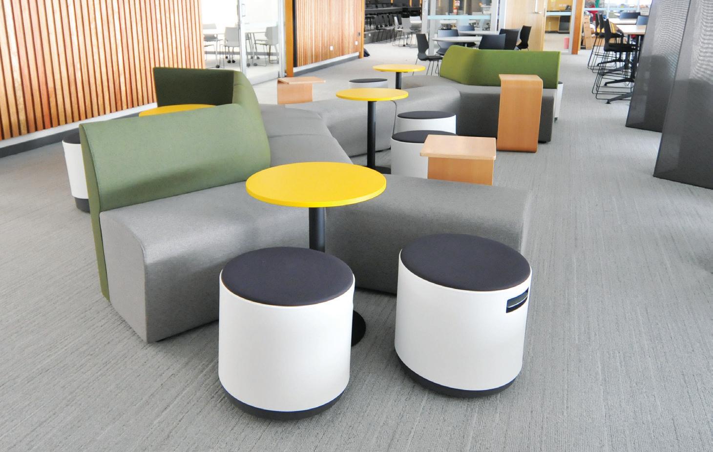 Audience Seating, Neos/ Poltrona Frau . Retractable seating, Figueras International Seating Desks and sit-stand desks, Kinnarps. Lounge seating, Haworth