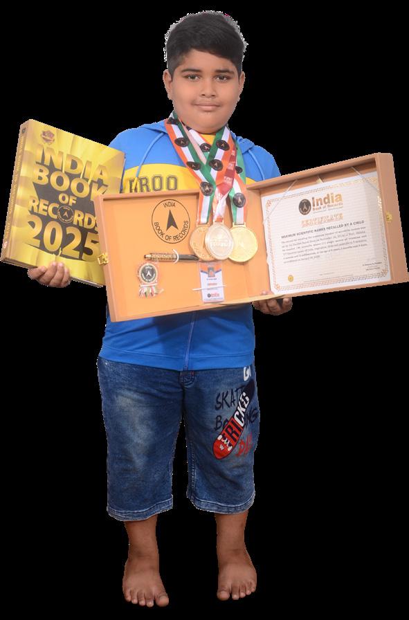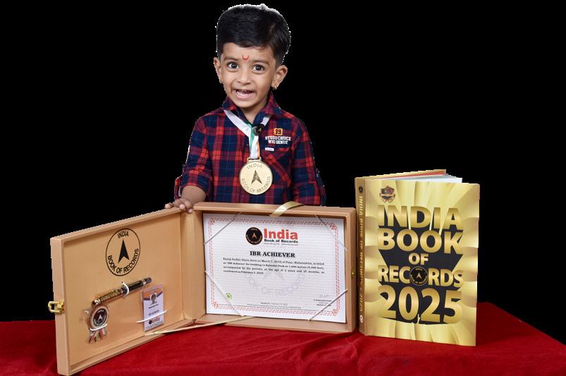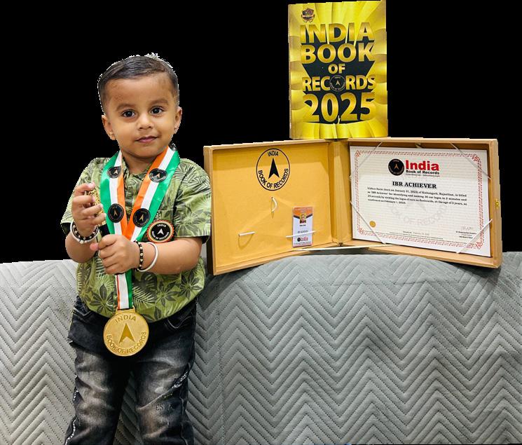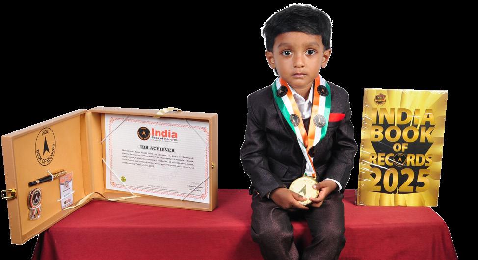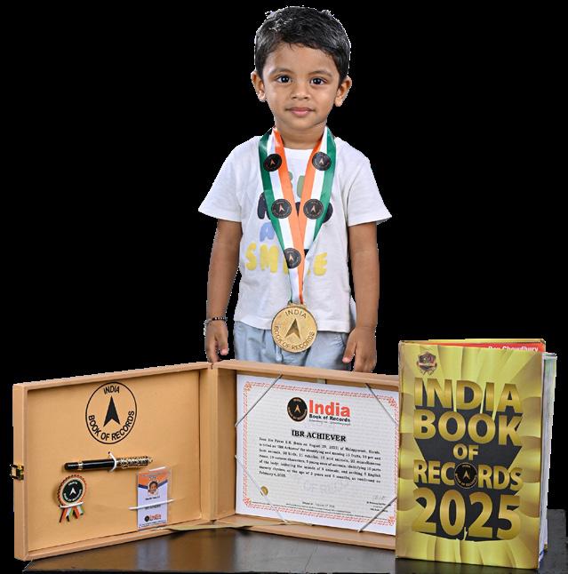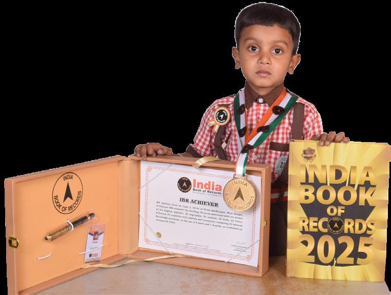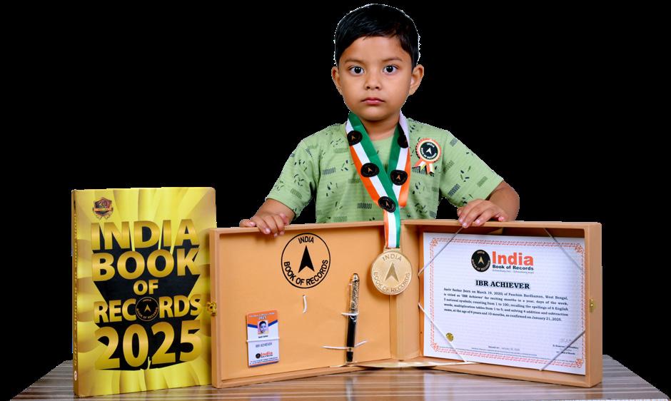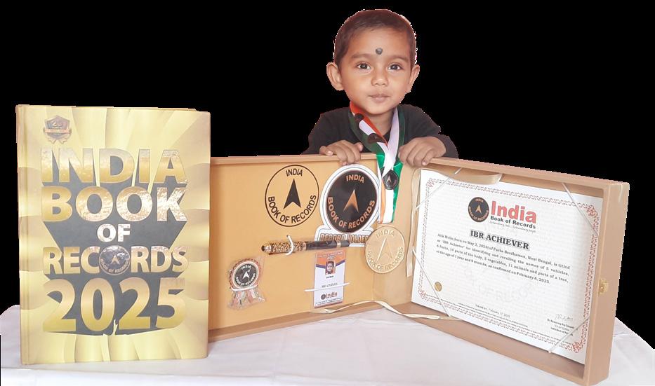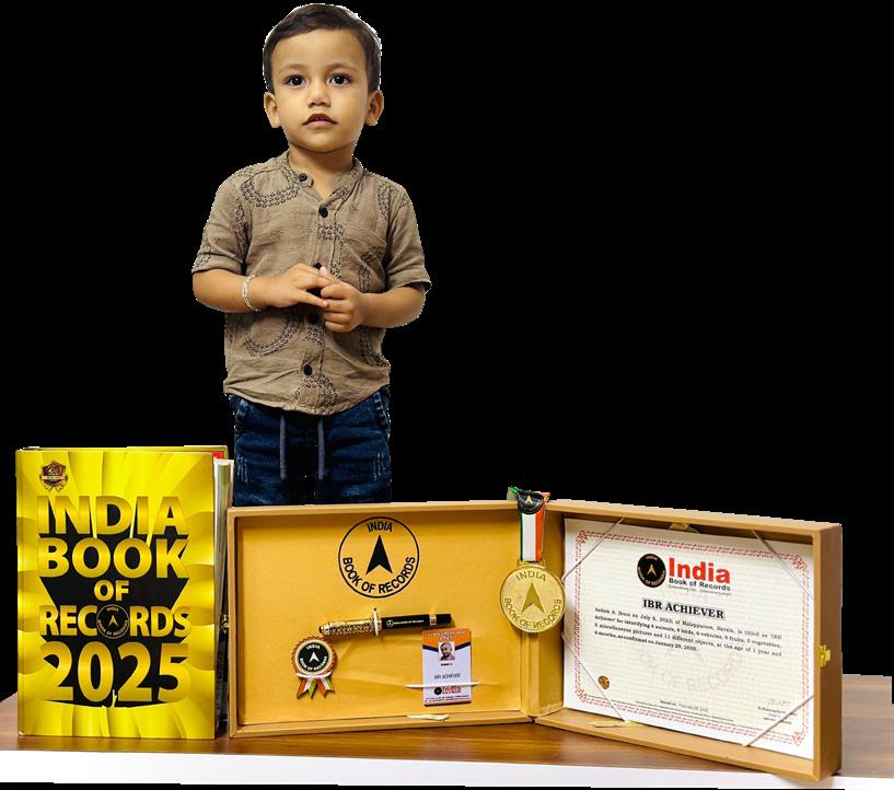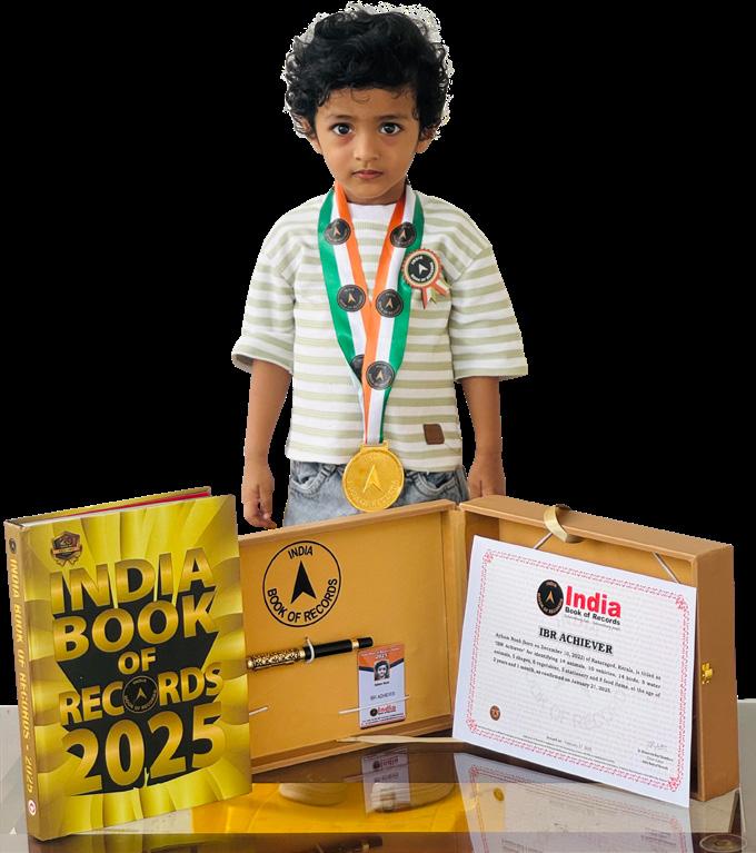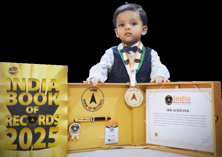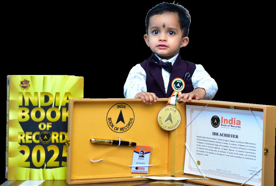 Shivansh Behera (born on December 20, 2021) of Mayurbhanj, Odisha, is titled as ‘IBR Achiever’ for identifying and naming 22 fruits, 22 farm and pet animals, 22 vegetables, 22 vehicles, 20 wild animals, 9 colours, letters of the English alphabet with associated words and recalling the names of 8 national symbols, at the age of 3 years and 1 month, as confirmed on January 28, 2025.