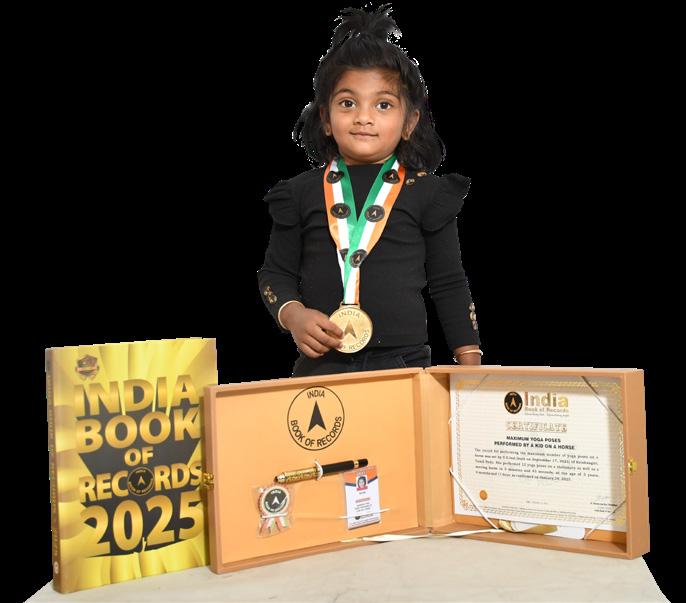 The record for performing the maximum number of yoga poses on a horse was set by V.S. Isai (born on September 17, 2021) of Krishnagiri, Tamil performed 12 yoga poses on as well as a moving horse in and 43 seconds, at the age 4 months and 11 days, as confirmed on January 28, 2025.