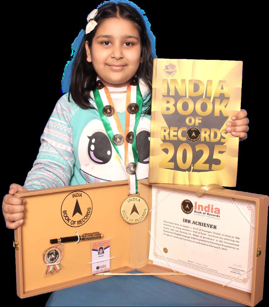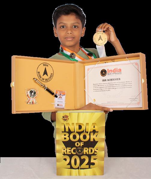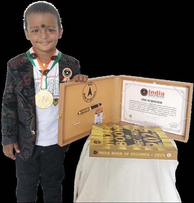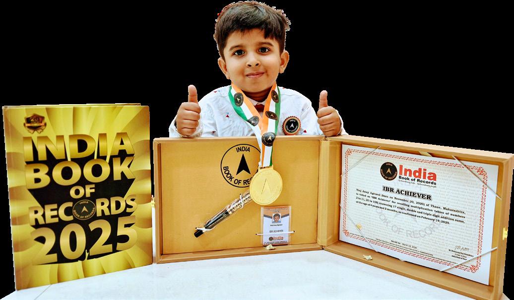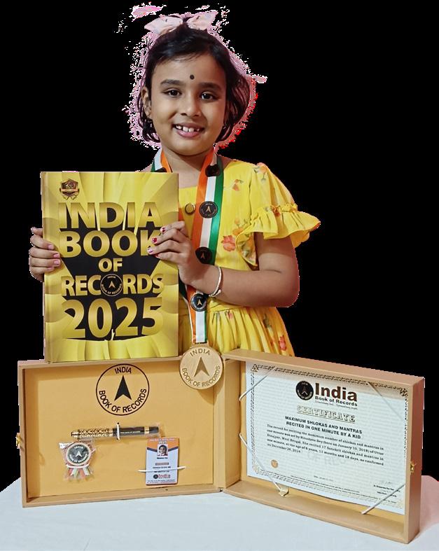 Shivang Gupta (born on February 10, 2016) of Ajmer, Rajasthan, is titled as ‘IBR Achiever’ for reciting 12 mantras in 53 seconds, including Vakratunda Mahakaya, Guru mantra and many more, at the age of 8 years and 11 months, as confirmed on January 28, 2025.