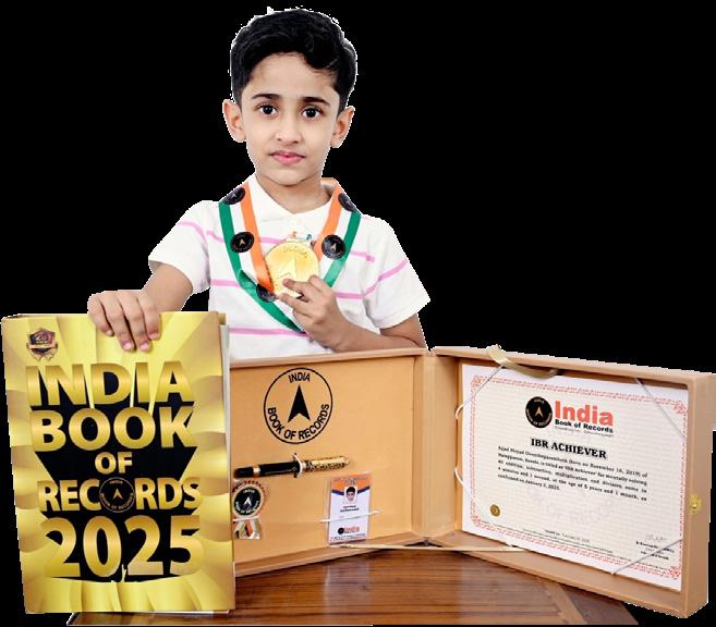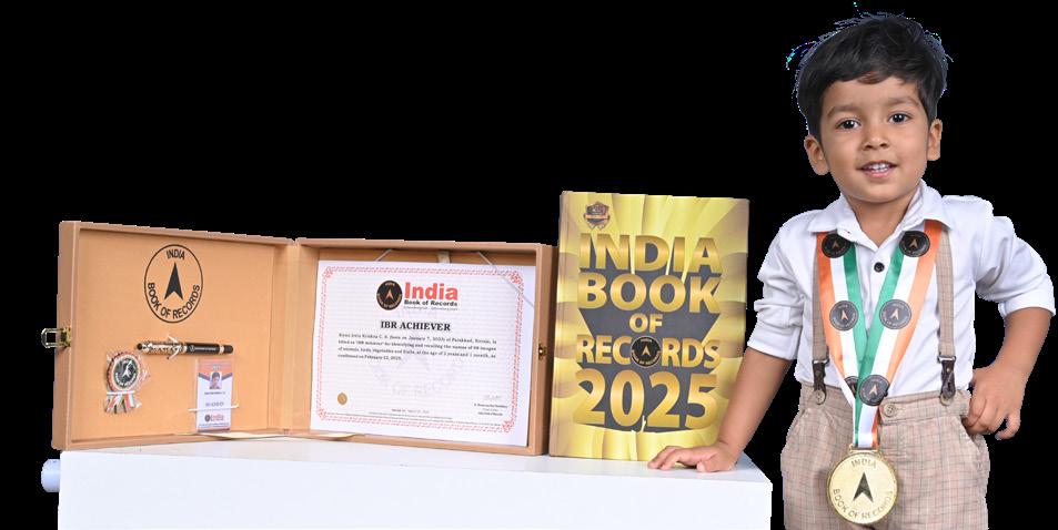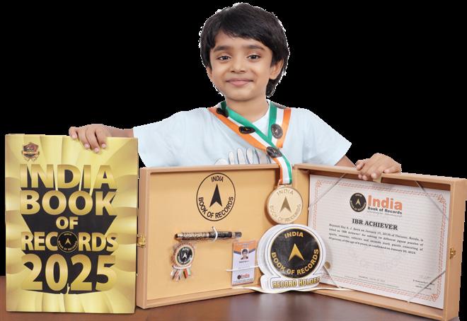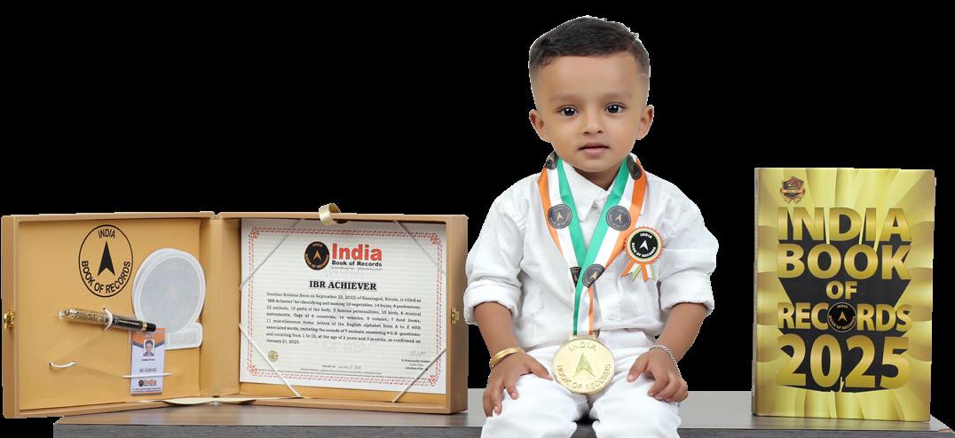 Gadin S. Dheeraj (born on June 2, 2023) of Kannur, Kerala, is titled as ‘IBR Achiever’ for identifying 20 animals, 22 fruits, 13 birds, 14 vehicles, 10 colours, 10 vegetables, 13 household items and 12 parts of the body, at the age of 1 year and 7 months, as confirmed on January 25, 2025.