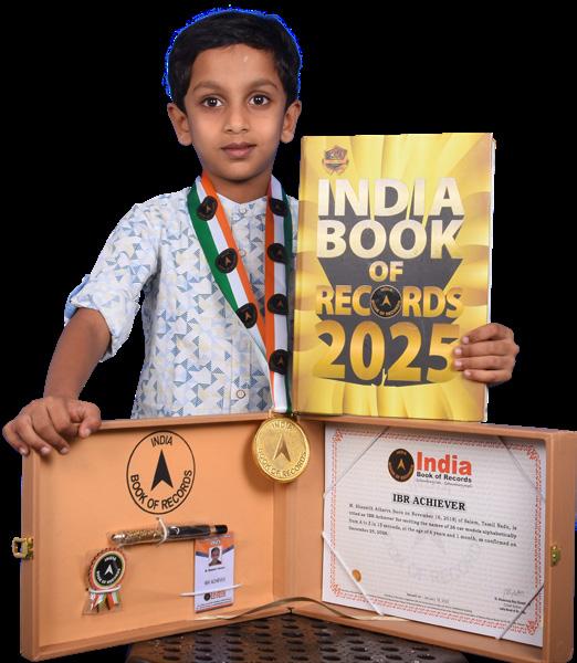 Muhammed Alen Ayzin M. (born on September 22, 2021) of Malappuram, Kerala, is titled as ‘IBR Achiever’ for identifying and recalling the names of the police emblems of 50 countries in 36 seconds by viewing the images of emblems on a laptop, at the age of 3 years and 3 months, as confirmed on December 26, 2024.