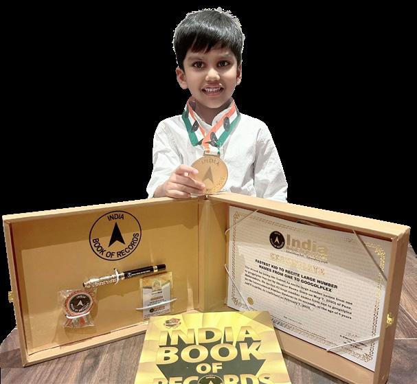 The record for being the fastest to recite large number names from one to googolplex was set by Shaarav on May 7, 2020) of Pune, Maharashtra. 42 large number names from one to (in the International Number System) seconds, at the age of 4 years and 9 months, as confirmed on February 7, 2025.