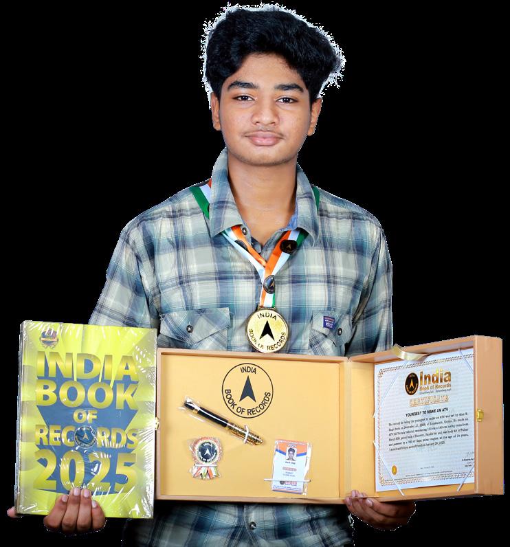 The record for being the youngest to make an ATV was set by Alan K. Shaji (born on December 23, 2008) of Ernakulam, Kerala. He made an ATV (All Terrain Vehicle), measuring 130 cm x 160 cm, using tyres from Maruti 800, petrol tank of Discover, Handle bar and rear body kit of Pulsar and powered by a 150 cc Bajaj pulsar engine, at the age of 16 years, 1 month and 6 days, as confirmed on January 29, 2025.