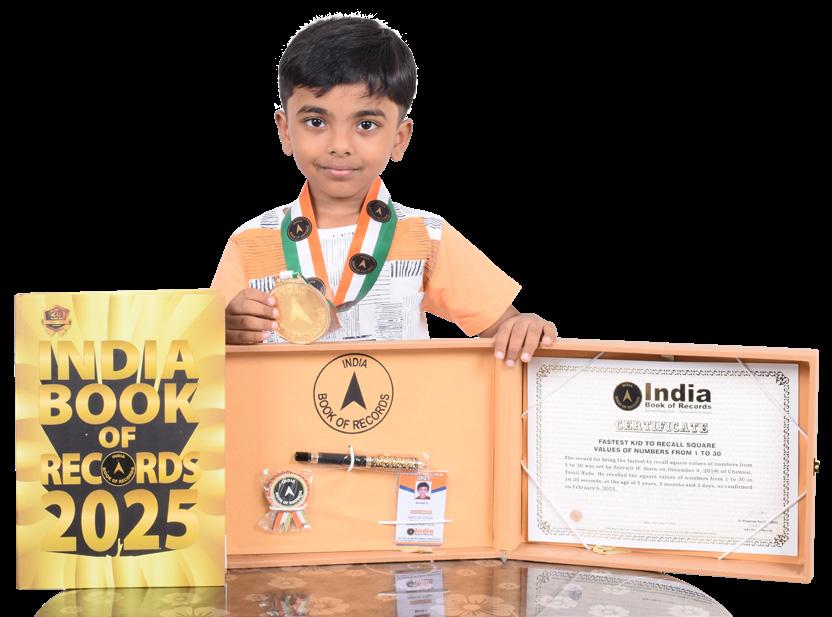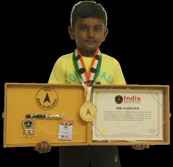 M. Shansith Atharva (born on November 16, 2018) of Salem, Tamil Nadu, is titled as ‘IBR Achiever’ for reciting the names of 26 car models alphabetically from A to Z in 15 seconds, at the age of 6 years and 1 month, as confirmed on December 25, 2024.