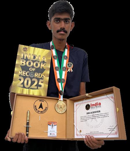 Srujan D. (born on May 18, 2009) of Mysuru, Karnataka, is titled as ‘IBR Achiever’ for writing 5 pages of cursive hand writing in 17 minutes and 55 seconds, using a pen, at the age of 15 years and 7 months, as confirmed on January 15, 2025.
