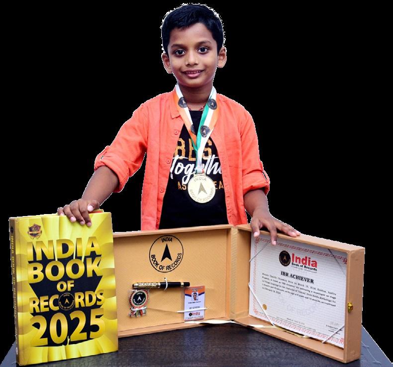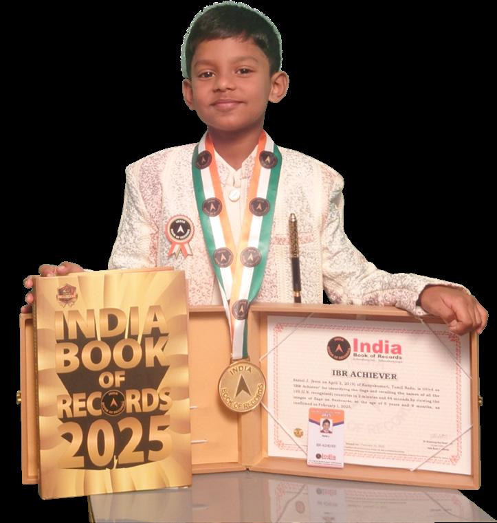 Dakshin Sooraj (born on January 5, 2017) of Alappuzha, Kerala, is titled as ‘IBR Achiever’ for identifying the flags and recalling the names of 153 countries with capitals in 8 minutes and 34 seconds by viewing the images of the flags on a large screen, using the app ‘Guess the Flag’, at the age of 8 years, as confirmed on January 20, 2025.