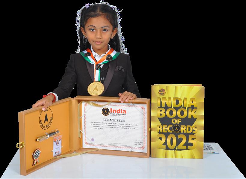 Jaya Sai Varshini (born on June 4, 2018) of Chennai, Tamil Nadu, is titled as ‘IBR Achiever’ for performing 1200 hula hoop spins around her waist in 10 minutes and 4 seconds, at the age of 6 years and 7 months, as confirmed on