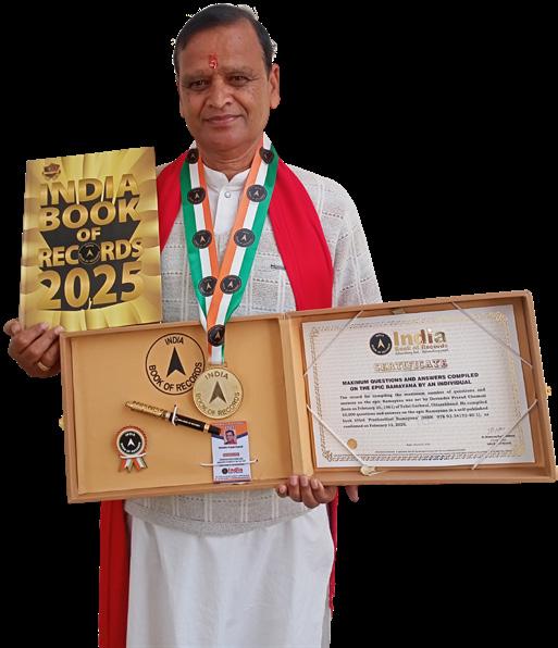 The record for compiling the maximum number of questions and answers on the epic Ramayana was set by Devendra Prasad Chamoli (born on February 20, 1961) of Tehri Garhwal, Uttarakhand. He compiled 10,000 questions and answers on the epic Ramayana in a self-published book titled ‘Prashnottari Ramayana’ (ISBN: 978-9334152-40-1), as confirmed on 12, 2025.