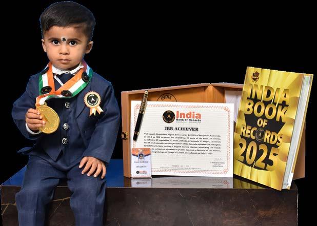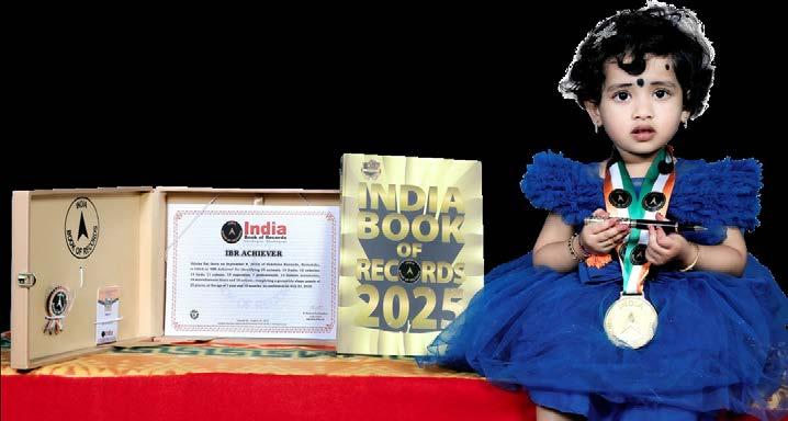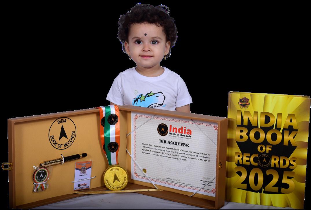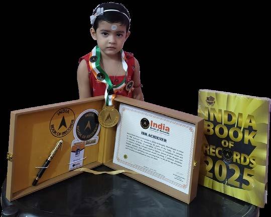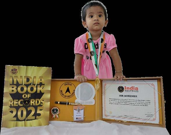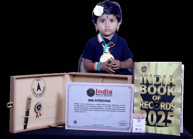 Vibha A. (born on November 6, 2023) of Shivamogga, Karnataka, is titled as ‘IBR Achiever’ for identifying 15 parts of the body, 104 miscellaneous pictures on flashcards, including birds, fruits, vegetables and animals, among others, and reciting a shloka, at the age of 1 year and 8 months, as confirmed on July 18, 2025.