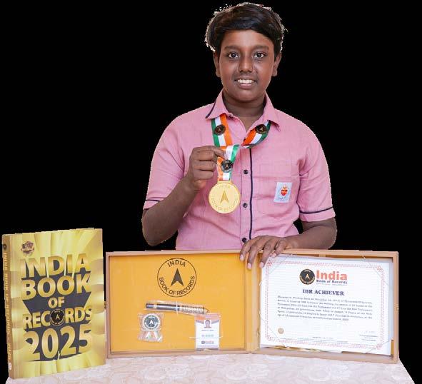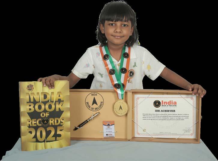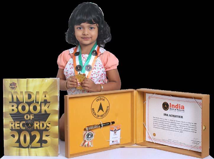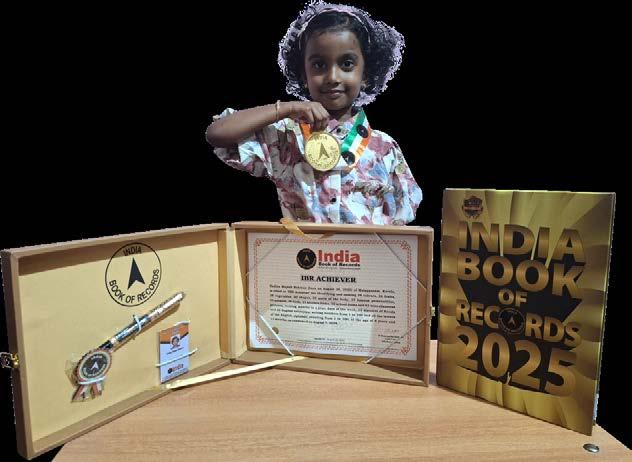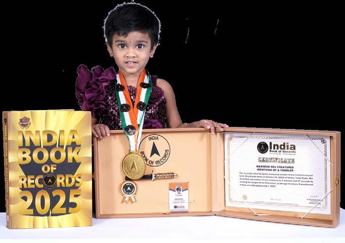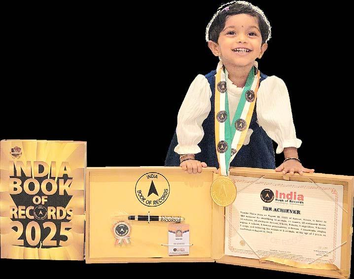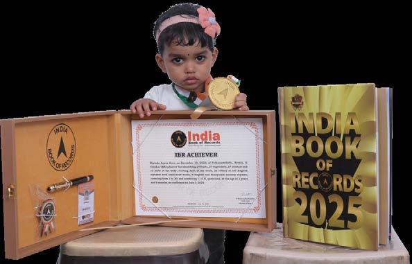 Niagara P. (born on October 18, 2022) of Palakkad, Kerala, is titled as ‘IBR Achiever’ for identifying 13 birds, 13 vehicles, 9 colours, 13 fruits and 13 vegetables; reciting days of the week and numbers from 1 to 10; translating the names of 13 animals from Tamil to English; and sounds of 6 animals, at years and 8 months, as June 24, 2025.