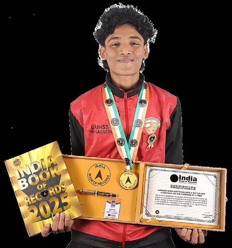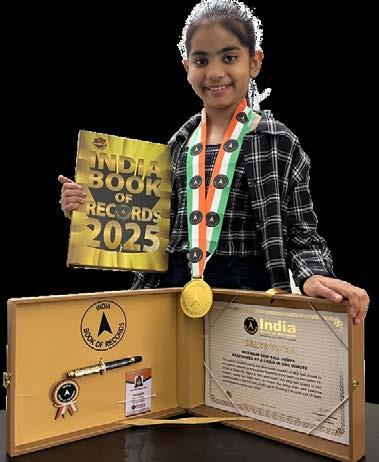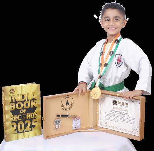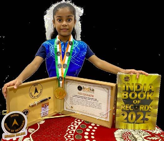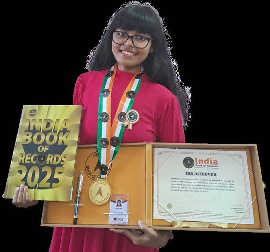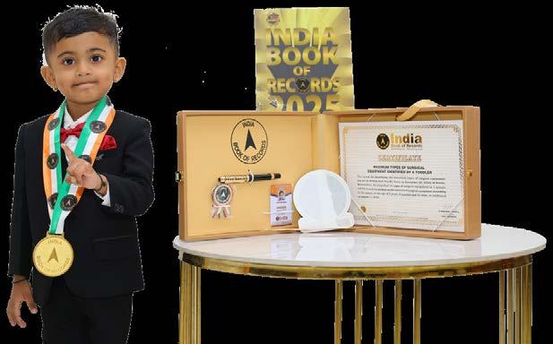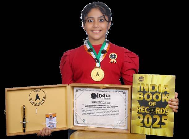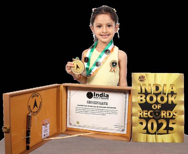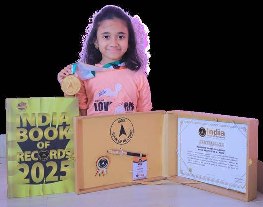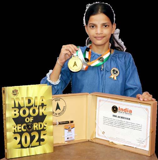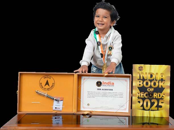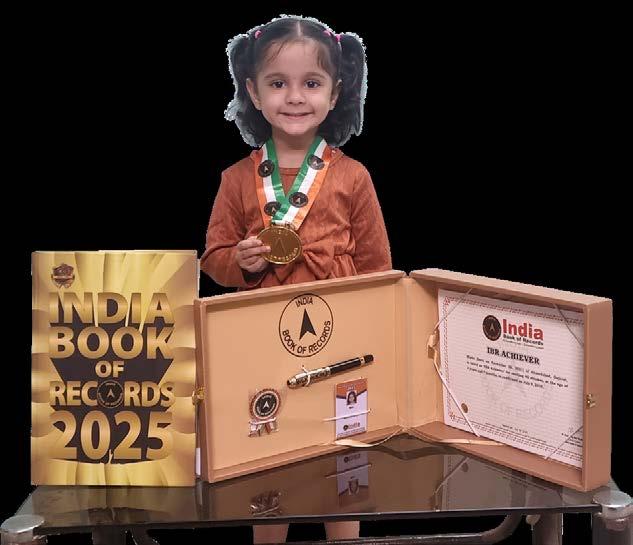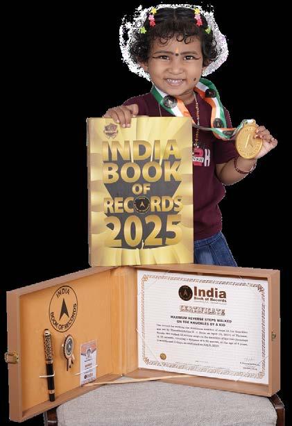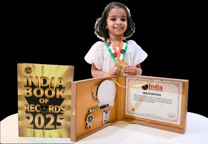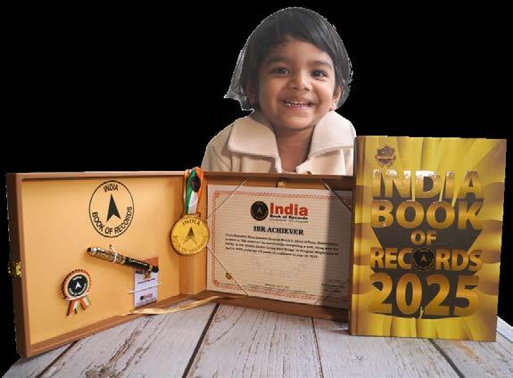 Saanvi K. (born on August 25, 2023) of Malappuram, Kerala, is titled as ‘IBR Achiever’ for identifying 5 vehicles, 5 animals, 5 vegetables, 5 fruits, 5 birds, 10 colours, 13 parts of the body and 13 associated pictures of the letters of the English alphabet; dancing on a song; sorting and stacking 7 coloured rings, at the age of 1 year and 9 months, as confirmed on June 21, 2025.