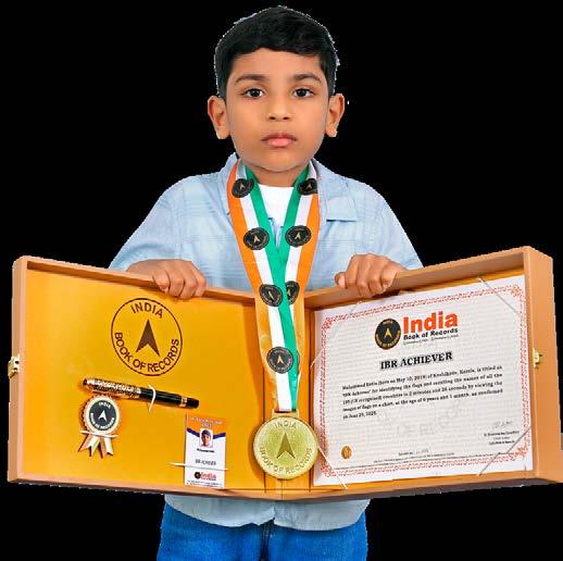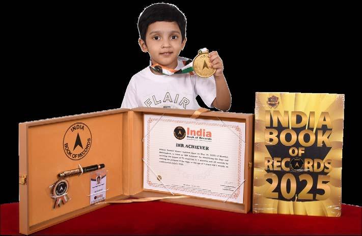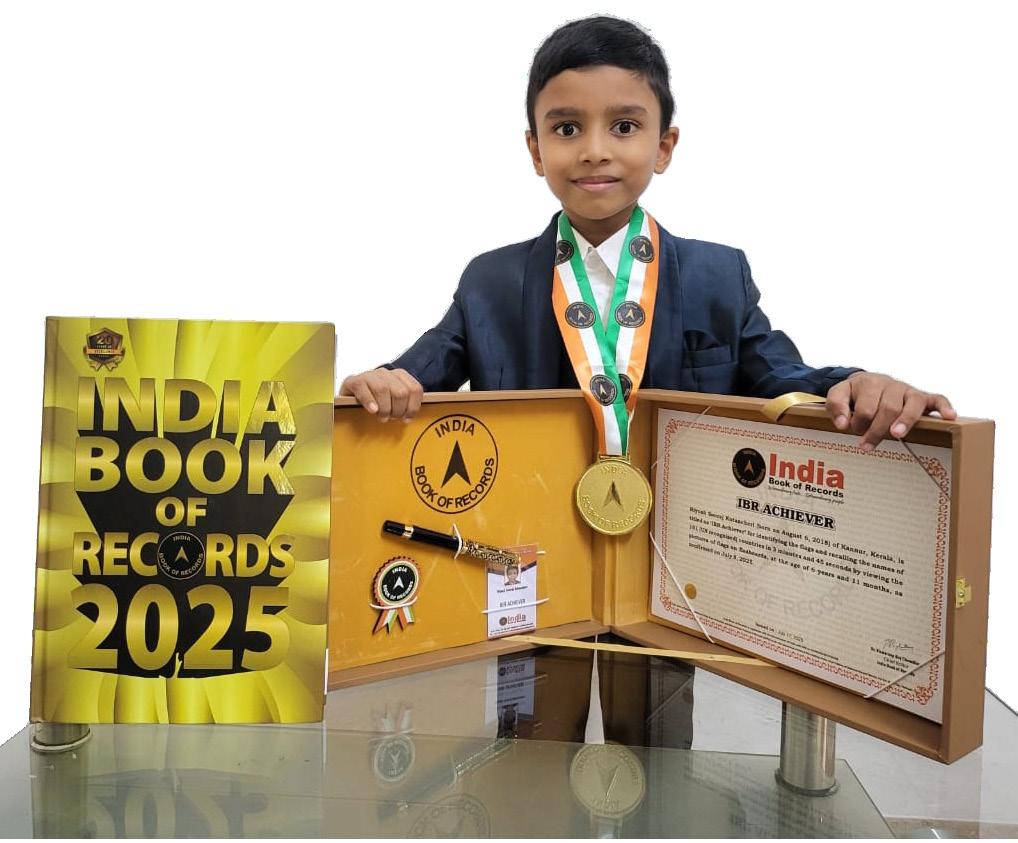 Muhammed Sadin (born on May 10, 2019) of Kozhikode, Kerala, is titled as ‘IBR Achiever’ for identifying the flags and recalling the names of all the 195 (UN recognised) countries in 3 minutes and 26 seconds by viewing the images of flags on a chart, at the age of 6 years and 1 month, as confirmed on June 25, 2025.