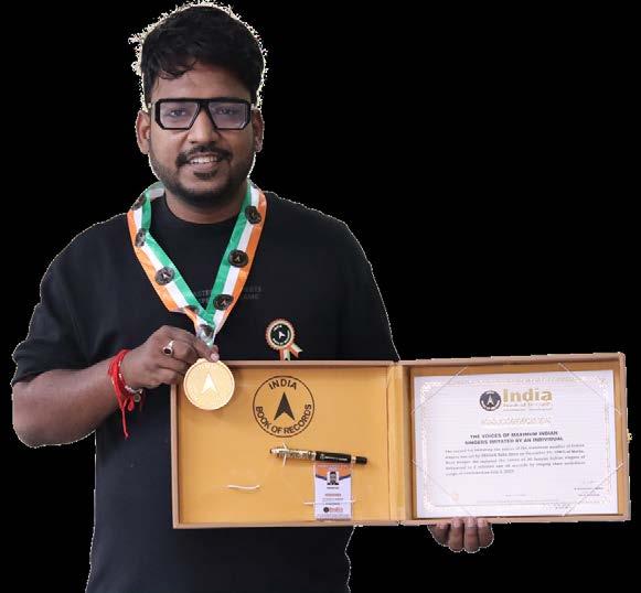 The record for imitating the voices of the maximum number of Indian singers was set by Abhisek Saha (born on December 31, 1987) of Malda, West Bengal. He imitated the voices of 30 famous Indian singers of Bollywood in 2 minutes and 48 seconds by singing their melodious songs, July 2, 2025.