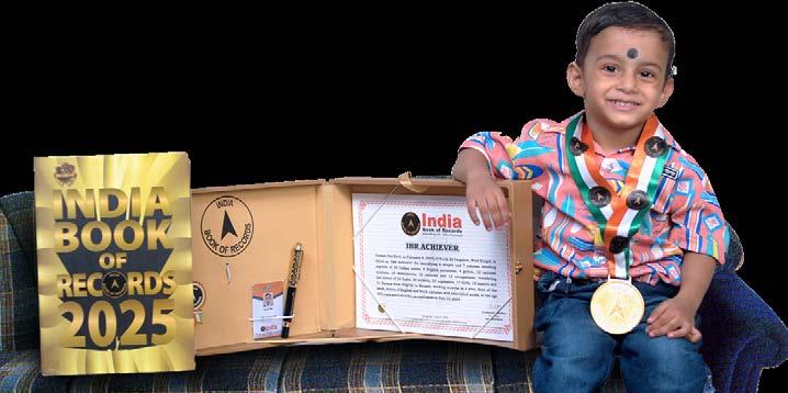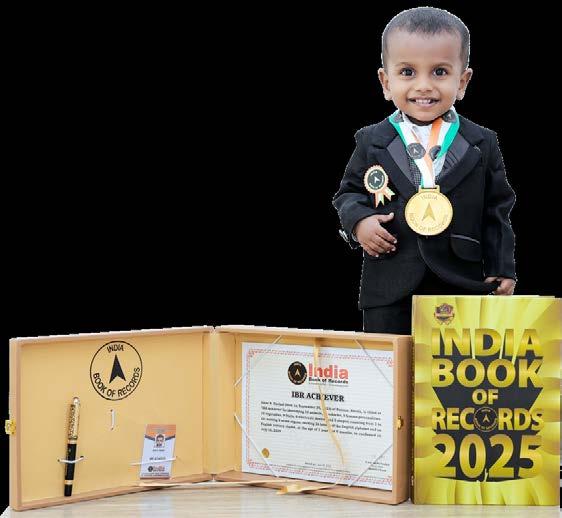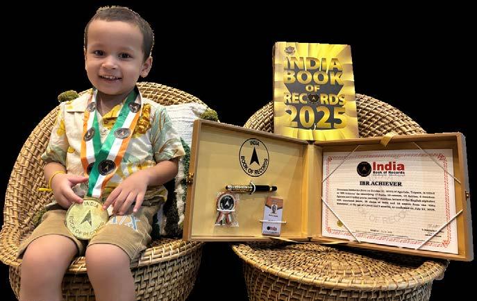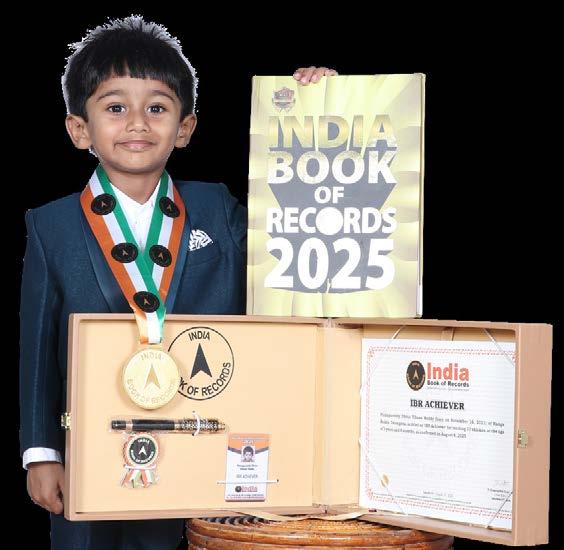 Paarthivv Ayaannshh Rao Cheella (born on February 9, 2023) of Nellore, Andhra Pradesh, is titled as ‘IBR Achiever’ for reciting 6 Telugu shlokas, 4 nursery rhymes in English and Telugu; counting from 1 to 10, at the age of 2 years and 5 months, as confirmed on August 8, 2025.