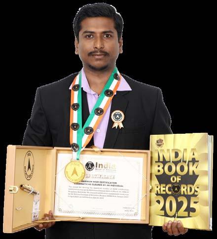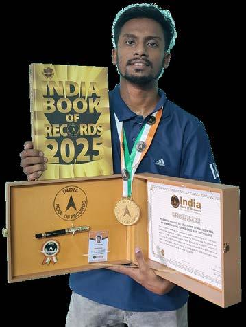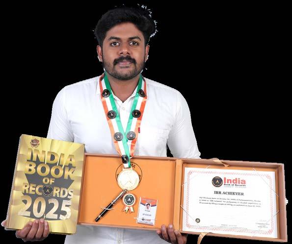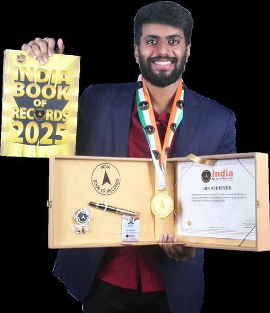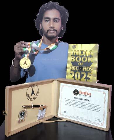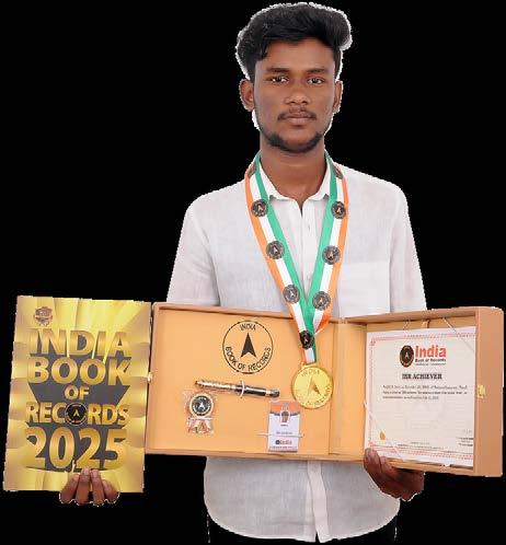 Jidhu Krishna (born on March 4, 2004) of Thoothukudi, Tamil Nadu, is titled as ‘IBR Achiever’ for undertaking a roundtrip motorcycle expedition from Kanyakumari. He commenced his expedition at 6.35 p.m. on May 26, 2025; covered Coimbatore, Tirupati, Siliguri, Bangladesh, Bhutan, Nepal, Gorakhpur and other places, and concluded the expedition at 3 a.m. on June 29, 2025 at Kanyakumari; travelling 11,032 km in 33 days, 8 hours and 25 minutes, as confirmed on July 4, 2025.