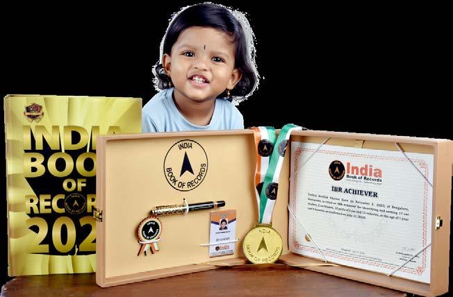 Shloka Rai (born on September 8, 2023) of Dakshina Kannada, Karnataka, is titled as ‘IBR Achiever’ for identifying 25 animals, 14 fruits, 15 vehicles, 14 birds, 11 colours, 15 vegetables, 7 professionals, 13 fashion accessories, 19 miscellaneous items and 16 actions; completing a geometric shape