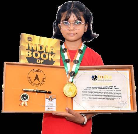 Vishakha Arun (born on September 22, 2021) of Bengaluru, Karnataka, is titled as ‘IBR Achiever’ for identifying and recalling the names of 28 Indian states with capitals, flags of 25 countries, 8 planets, 20 shapes and 24 colours; reciting all the 26 letters of the English alphabet, 10 English nursery rhymes; singing devotional and cinematic songs with lyrical precision; counting from 1 to 100; solving 2 puzzles of an Indian and a world map, at the age of 3 years and 9 months, July 15, 2025.