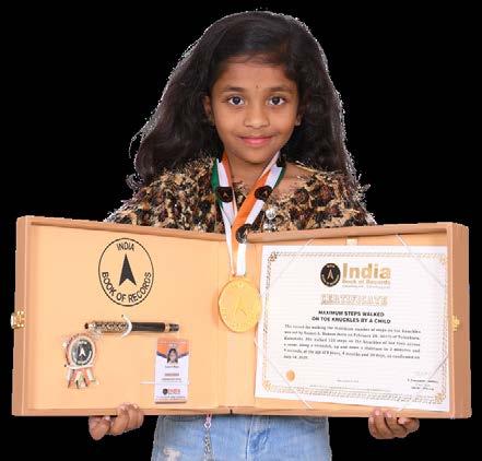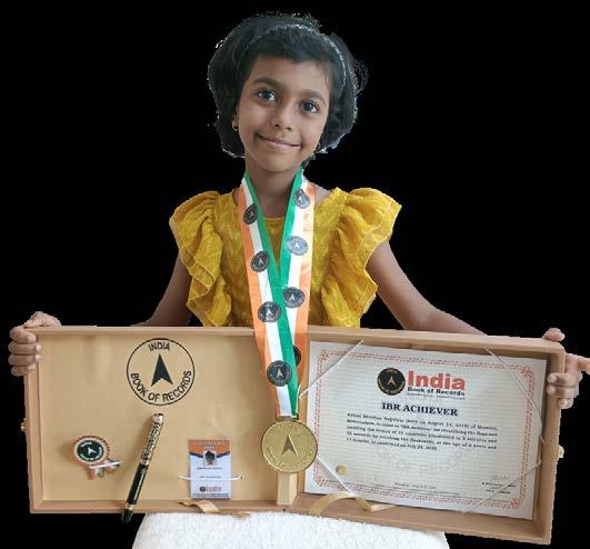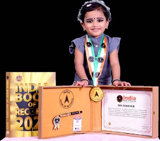 Zaiva Ezlin (born on December 17, 2022) of Malappuram, Kerala, is titled as ‘IBR Achiever’ for identifying 9 vehicles, 11 animals, 9 vegetables, 11 fruits, 6 colours and 9 parts of the body; solving an alphabet puzzle; and counting from 1 to 10, at the age of 2 years and