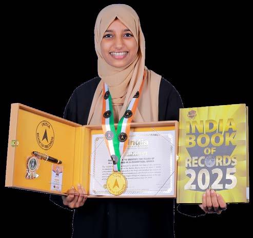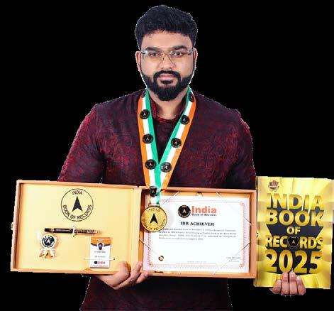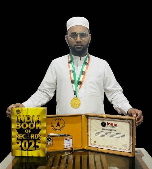 Hadiya Mujeeb Rahman (born on August 24, 2020) of Malappuram, Kerala, is titled as ‘IBR Achiever’ for identifying and naming 28 colours, 36 fruits, 28 vegetables, 20 shapes, 39 parts of the body, 35 famous personalities, 55 animals, 26 birds, 23 kitchen items, 30 school items and 63 miscellaneous pictures; reciting months in a year, days of the week, 14 districts of Kerala and 28 English antonyms; writing numbers from 1 to 100 and all the letters of the English alphabet; counting from 1 to 100, at the age of 4 years and 11 months, as August 7, 2025.