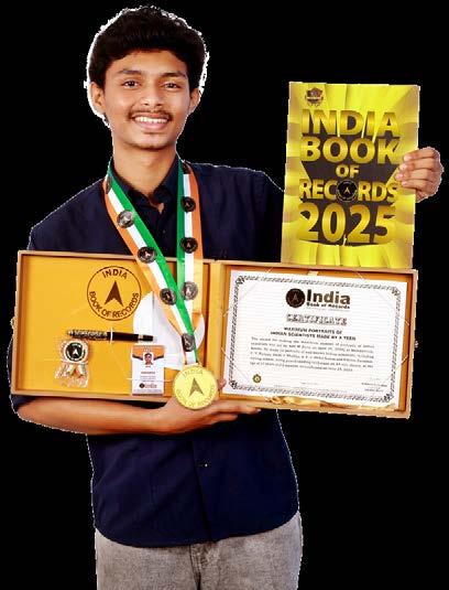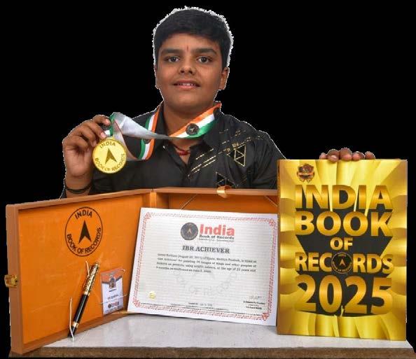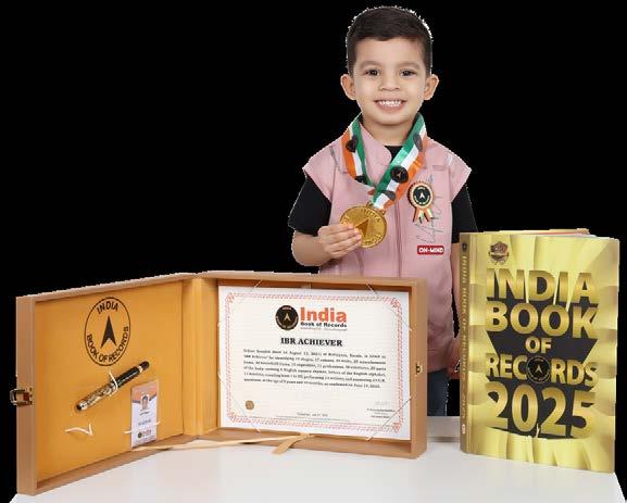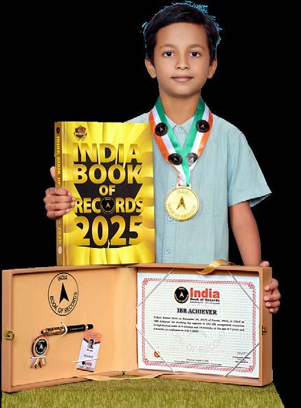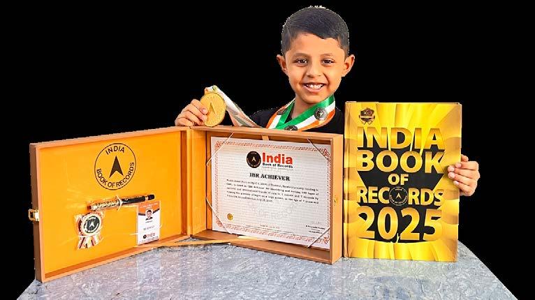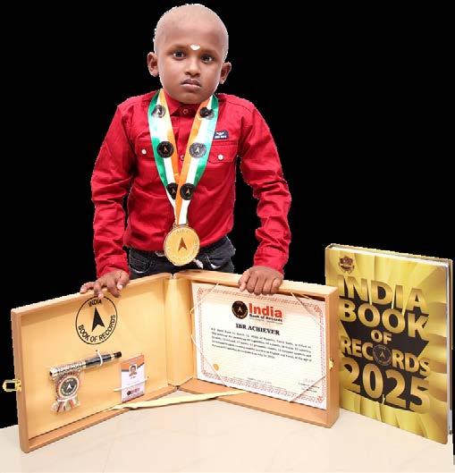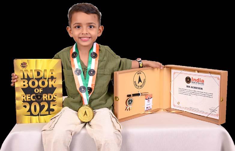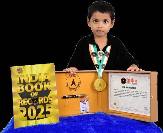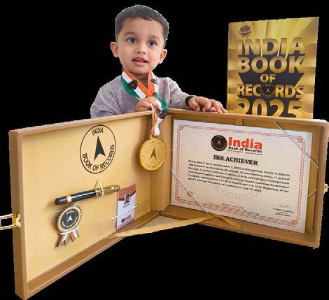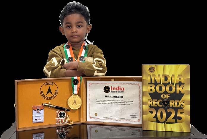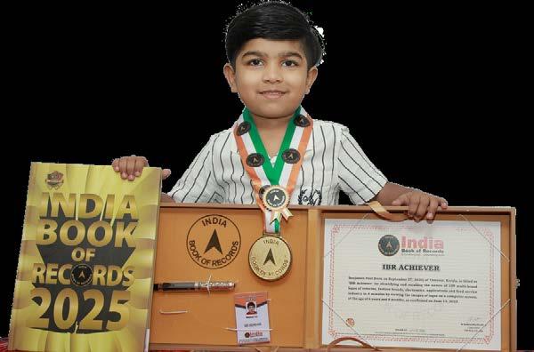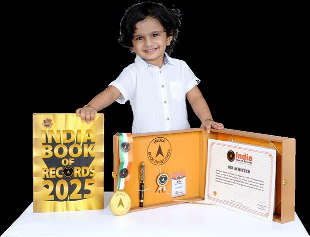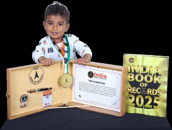 Yash Arjun (born on October 5, 2022) of Alappuzha, Kerala, is titled as ‘IBR Achiever’ for identifying and naming 26 vegetables, 30 fruits, 20 shapes, 13 colours, 48 animals, 22 parts of the body, 35 vehicles, 26 miscellaneous pictures, 16 action words and 8 planets; reciting days of the week, months in a year, 11 English antonyms and 26 letters of the English alphabet with associated words; counting from 1 to 30, at the age of 2 years and 9 months, as confirmed on July 15, 2025.