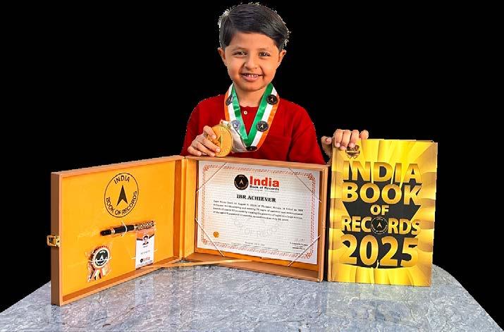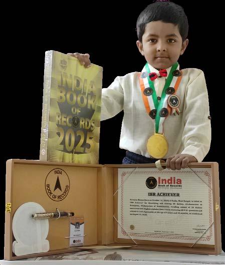 Poorav Suri (born on January 11, 2020) of Gandhi Nagar, J&K, is titled as ‘IBR Achiever’ for recalling the names of 28 Indian states with capitals, 7 continents, 4 zones, 8 planets, and 5 oceans, at the age of 5 years and 7 months, as confirmed on August 25, 2025.