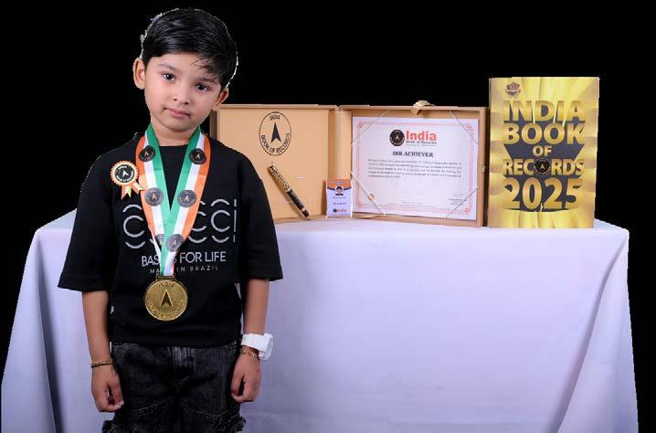 Aarav Gupta (born on September 16, 2020) of Jammu, J&K, is titled as ‘IBR Achiever’ for recalling the capitals of 101 countries in 2 minutes and 26 seconds by hearing the name of the countries in alphabetical order from A to Z, at the age of 4 years and 9 months, as confirmed on July 11, 2025.