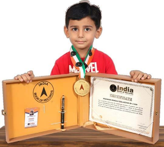 The record for collecting the maximum number of pencils was set by Vihaan Jinkalkumar Patel (born on December 1, 2020) of Ahmadabad, Gujarat. He has a collection of 975 different types of colourful pencils, at the age of 4 years, 6 months and 23 days, as confirmed on June 24,