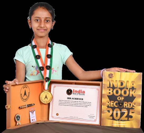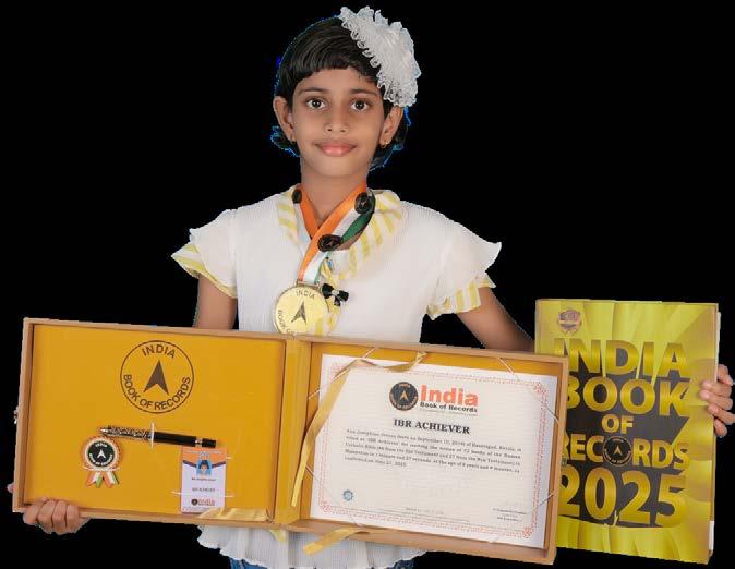 Ann Josephine Jeeson (born on September 10, 2016) of Kasaragod, Kerala, is titled as ‘IBR Achiever’ for reciting the names of 73 books of the Roman Catholic Bible (46 from the Old Testament and 27 from the New Testament) in Malayalam in 1 minute age of 8 years and 9 on June 21, 2025.