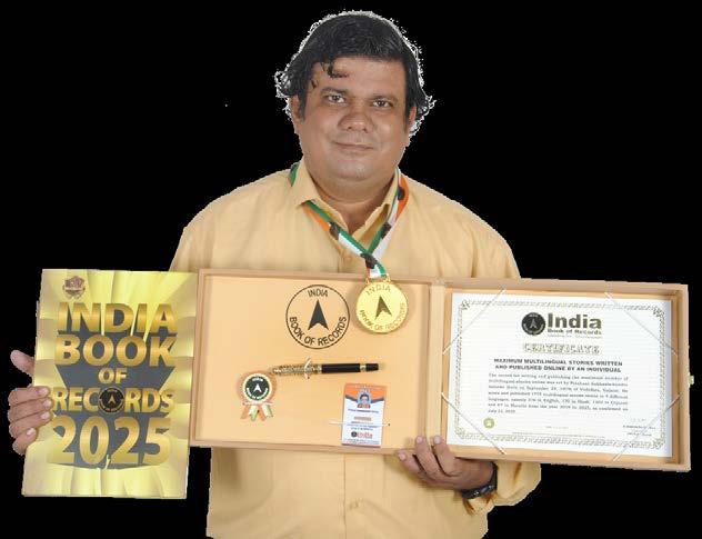 The record for writing and publishing the maximum number of multilingual stories online was set by Prashant Subhashchandra Salunke (born on September 29, 1979) of Vadodara, Gujarat. He wrote and published 1775 multilingual stories online in 4 different languages, namely 376 in English, 130 in Hindi, 1202 in Gujarati and 67 in Marathi from the year 2019 to 2025, July 22,
