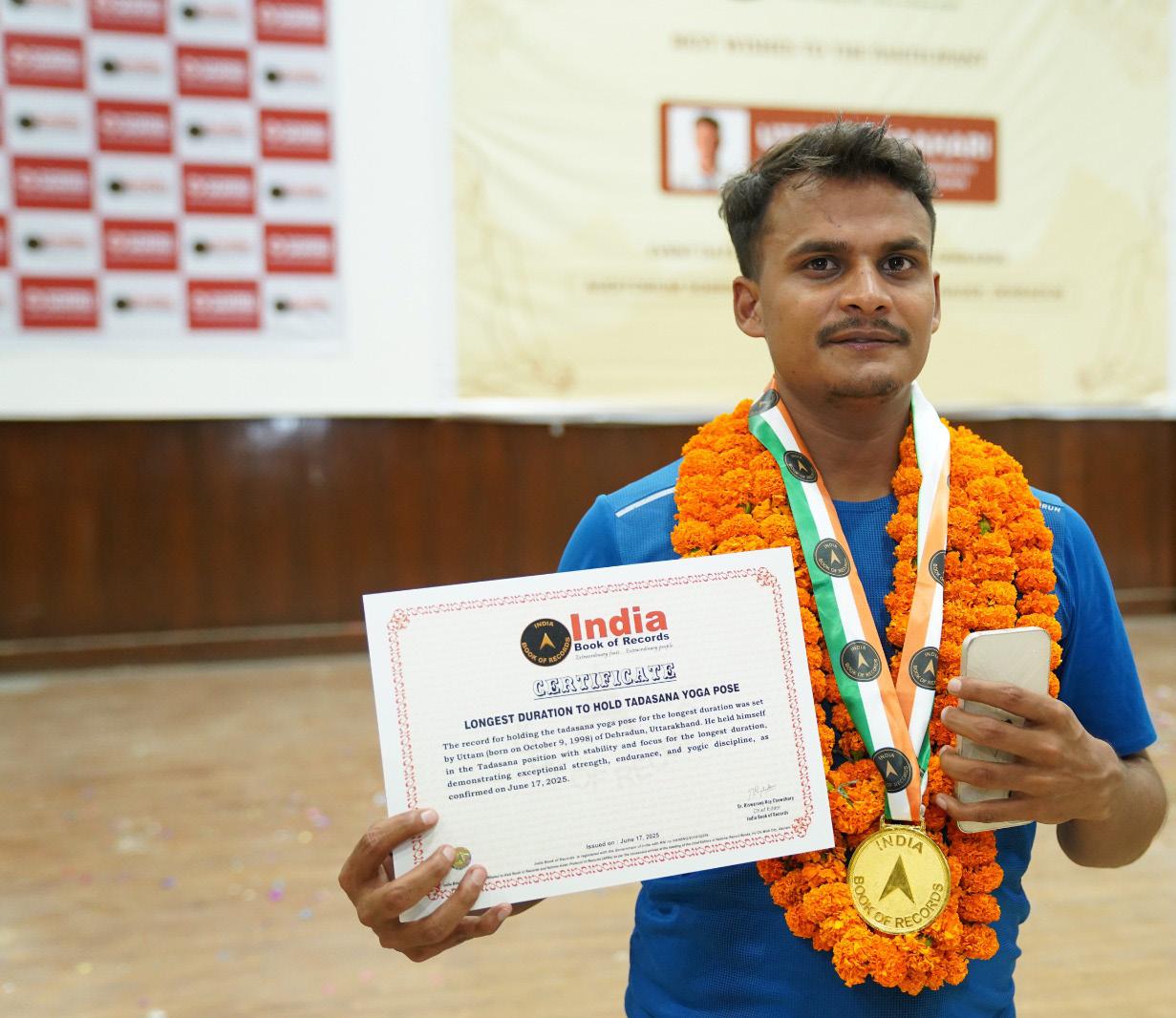 Shaurya Sagar Pandey (born on October 17, 2013) of Kanpur Dehat, Uttar Pradesh, is titled as ‘IBR Achiever’ for balancing a football in the neck stall position for 20 minutes, while sitting with body bent forwards, at the age of 11 years and 10 months, as confirmed on August 23, 2025.