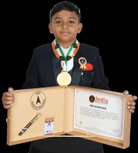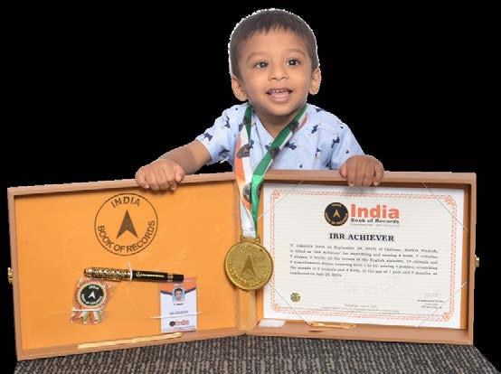 Aarav Krishna (born on November 18, 2023) of Thiruvanathapuram, Kerala, is titled as ‘IBR Achiever’ for identifying 36 creatures, 42 miscellaneous items, 25 fruits, 45 vehicles, 24 birds, 23 vegetables, 14 famous personalities, 10 shapes, 11 parts of the body, 12 electrical items, 9 insects, 7 musical instruments, flags of 7 countries, 10 sea animals, 6 historical places and 4 colours, at the age of 1 year and 8 months, as confirmed on