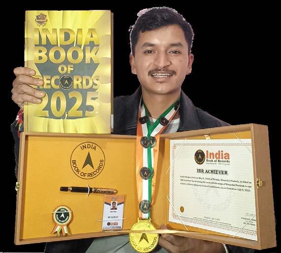 Monu (born on October 29, 2003) of Dehradun, Uttarakhand, is titled as ‘IBR Achiever’ for undertaking a round-trip motorcycle expedition from Leh to Umling La Pass. He started his expedition at 7.08 a.m. from Leh on May 28, 2025, reached Umling La Pass at 12.19 p.m. on May 28, 2025, and returned to Leh at 6.27 p.m. on May 28, 2025, as confirmed on July 7, 2025.